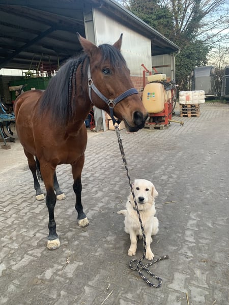 Wij verkopen onze Quarter Horse x Andalusiër merr Billy, geboren in 2011. Na anderhalf jaar hebben we er, met pijn in ons hart, voor gekozen om een geschikter onderkomen voor haar te zoeken, omdat de harmonie tussen ons, ondanks onze inspanningen, niet helemaal is geworden zoals we hadden gehoopt. Ze is een zelfverzekerde paard met veel uitdrukking en persoonlijkheid. Tegelijkertijd lijkt het alsof ze in het verleden niet alleen goede ervaringen heeft opgedaan – vooral in de box toont ze zich zeer gevoelig. Ook mannen lijken haar aanvankelijk wat voorzichtiger te maken. Maar zodra ze vertrouwen heeft, is ze een zeer lieve, aanhankelijke paard dat oprecht blij is om haar mens te zien. Belangrijke gegevens • Merrie geboren in mei 2011 (14 jaar) • Stockmaat: 1,49 m • Kleur: bruin met een kleine witte bles • Afstamming: Quarter Horse x Andalusiër • Op ongeveer 90% blind aan één oog, maar dat belemmert haar niet. • Licht Sattelzwang Ruiterschap Wij zouden zeggen dat ze niet geschikt is voor beginners, omdat ze zeker een ervaren, rustige ruiter met een zachte hand nodig heeft, zodat beiden gelukkig kunnen zijn. Haar tong is helaas gevoelig/beschadigd, daarom is een fijne, rechtvaardige aanleuning extra belangrijk. Ze heeft een basisopleiding in reining, maar is vooral recreatief gereden door ons. Vanwege familieomstandigheden is ze de laatste tijd niet regelmatig getraind. Tempo & Buitenritten Als ze niet goed uitgedaagd wordt, kan ze op sommige dagen vrij snel worden en zelfs graag gaan rennen. Maar als ze regelmatig gewerkt wordt, heeft ze een normaal tempo en werkt ze goed mee. In het terrein gaat ze over het algemeen graag, maar is niet 100% terreinvast. In bepaalde situaties kan ze stressreacties vertonen, waardoor ze onrustig wordt – daarom alleen voor ruiters die zulke momenten kalm kunnen opvangen. Verder is ze vrij schrikvast. Herde Op de wei is ze goed in de groep, maar heeft veel ruimte nodig. Op kleine paddocks kan ze het beste alleen staan. Ze is zeer dominant, maar kan, onder de juiste omstandigheden, ook samen met hengsten staan. ⸻ Het is voor ons belangrijk dat ze in liefdevolle, ervaren handen komt die haar sensitiviteit begrijpen en haar met rust, duidelijkheid en een rechtvaardige rijstijl veiligheid bieden. We wensen haar een nieuw thuis dat misschien nog wat beter past – zodat ze haar mensen kan vinden en daar echt haar plek kan vinden.