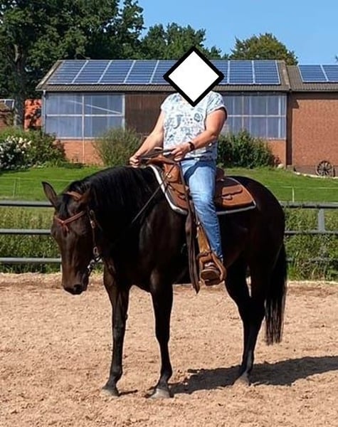Sally ist eine hübsche, kompakte und kräftige Quarter Horse Stute, geboren 2011, mit einem Stockmaß von ca. 151 cm. Die bayfarbene Stute besitzt einen Pass, jedoch keine Papiere. Sie überzeugt vor allem durch ihren lieben, menschenbezogenen Charakter. Sally ist sensibel, sehr brav im Umgang und immer händelbar. Die Stute ist kinderlieb, kennt den Umgang mit Kindern und eignet sich daher auch sehr gut für Jugendliche. Durch ihre schnelle Auffassungsgabe lernt sie gerne und ist vielseitig einsetzbar. Aktuell lebt Sally im Offenstall in der Herde in Robusthaltung. Sie kennt jedoch auch Boxenhaltung, Weide, Wald, Wassergräben und verschiedene Alltagssituationen. In der Herde ist sie sehr verträglich und kommt auch mit Wallachen problemlos klar. Zudem ist sie leichtfuttrig und kann auch jederzeit alleine bleiben. Gesundheitlich steht sie gut da. Sally ist regelmäßig geimpft und entwurmt. Zurzeit läuft sie barhuf, im Gelände wird sie mit Hufschuhen geritten. Sie ist geländesicher, kennt Ralleys und lässt sich in wenigen Sekunden verladen. Sally besitzt eine sehr gute Westernausbildung in Richtung Allround, insbesondere in Ranch Riding und Ranch Rail. Sie wurde bereits erfolgreich geshowt und zeigt sich auch auf Turnieren ruhig und unkompliziert. Zusätzlich war sie fünf Monate im Profitraining und hat fortlaufend Unterricht erhalten. Mit ihren guten Bewegungen, ihrem ausgeglichenen Wesen und ihrer Vielseitigkeit ist Sally die ideale Partnerin für ambitionierte Freizeitreiter, die Abwechslung im Sattel schätzen. Gleichzeitig ist sie auch eine tolle Wahl für Jugendliche, die ein zuverlässiges und gut ausgebildetes Pferd suchen.