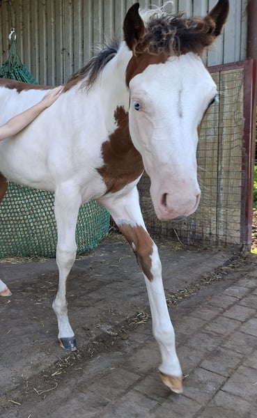 Quarter Horse/Paint Mare – geschikt voor recreatief gebruik of wedstrijdsport Te koop staat een gezonde, levendige bontmerrie, geboren in 04/25. De merrie valt op door haar compacte, correcte bouw en veel "Lady Charme". Ze wordt in een outdoor stal gehouden, maar kent ook boxenstallen en wordt uiteraard regelmatig ontwormd en voorgesteld aan de hoefsmid. Haar robuuste constitutie en evenwichtige karakter maken haar tot een ideale partner voor recreatief gebruik of in de wedstrijdsport. In omgang is ze open en nieuwsgierig en staat ze open voor nieuwe prikkels. Haar moeder (vos, zie foto) is een Quarter Horse-merrie. De vader (laatste foto's) is een gekeurde dekhengst – Moonlight Bandit, gekeurd met 8,4 punten door ZSSE e.V. als Europees Westernpaard. Wie dus op zoek is naar een "Eye Catcher" met uitstekende eigenschappen, neemt graag contact op om verdere details te bespreken en een persoonlijk indruk te krijgen.