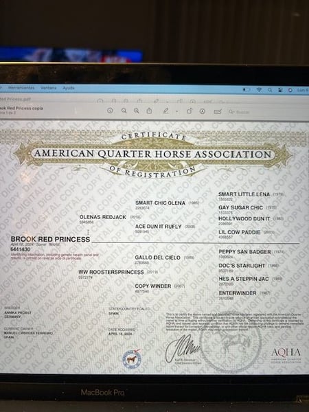 Preciosa prospecto, muy mansa y generosa en todo lo que hace y cómo se relaciona. Genética contrastada y mucho potencial.