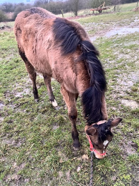 💥 LILLY RUF DUN IT💥 Superbe pouliche Quarter Horse PP de 8 mois de robe Buckskin (Isabelle) bien dans sa tête et proche de l’homme. ✨ Très sociable, elle recherche naturellement le contact humain. ✨ Se laisse manipuler facilement (donne les pieds, accepte le licol, marche en main). ✨ Poulain bien éduqué pour son âge, respectueuse et curieuse. 🩺 À jour : ✔️ Vaccins ✔️ Pucée ✔️ Vermifugée 6 panels N/N (tests fait) Par Shining Bliss CT (Lil Ruf Peppy) et Boogies Dun It NAHR (Boogies Flashy Jac) 📏 Taille estimée : 1,48m 📍 Visible à l’élevage – Petit-Réderching (Moselle) 📸 Photos et vidéos disponibles sur demande Wunderschöne 8 Monate alte Quarter Horse Stute mit vollen Papieren (PP), in der Farbe Buckskin (Isabell), ausgeglichen und sehr menschenbezogen. ✨ Sehr sozial, sucht von Natur aus den Kontakt zum Menschen. ✨ Lässt sich problemlos händeln (gibt die Hufe, akzeptiert das Halfter, lässt sich am Strick führen). ✨ Für ihr Alter gut erzogen, respektvoll und neugierig. 🩺 Auf dem neuesten Stand: ✔️ Geimpft ✔️ Gechipt ✔️ Entwurmt 6 Panels N/N (Tests durchgeführt) Von Shining Bliss CT (Lil Ruf Peppy) und Boogies Dun It NAHR (Boogies Flashy Jac) 📏 Geschätztes Endmaß: 1,48 m 📍 Sichtbar in der Zucht – Petit-Réderching (Moselle)