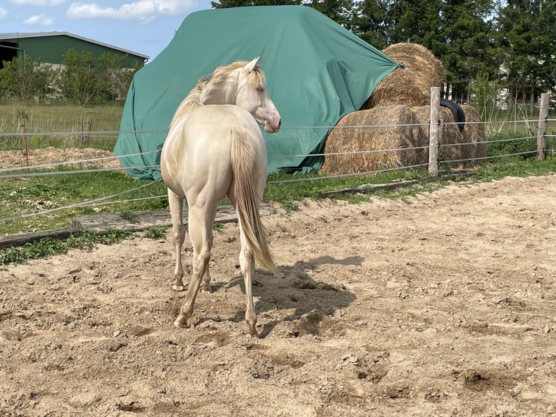 **For Sale: American Quarter Horse Mare** For sale is a promising American Quarter Horse mare, born on May 7, 2024. This charming champagne color makes her a real eye-catcher! **Features:** - Breed: American Quarter Horse with papers from DQHA and AQHA - Gender: Mare - Color: Amber Cream Champagne - Height: Estimated final height of 148 cm - Suitability: Western Allround - Foal Show 2024: Premium Foal 1a This mare impresses not only with her appealing appearance but also with her friendly, people-oriented nature and high willingness to learn. She is well-suited for various disciplines in Western riding and is suitable for both beginners and experienced riders. “Diva” is free of genetic defects through her parents! If you are interested or need more information, please feel free to contact me. Don't miss this opportunity and schedule a viewing appointment!