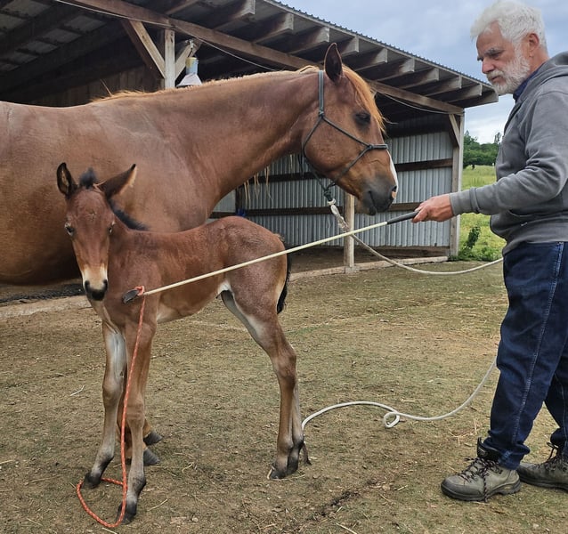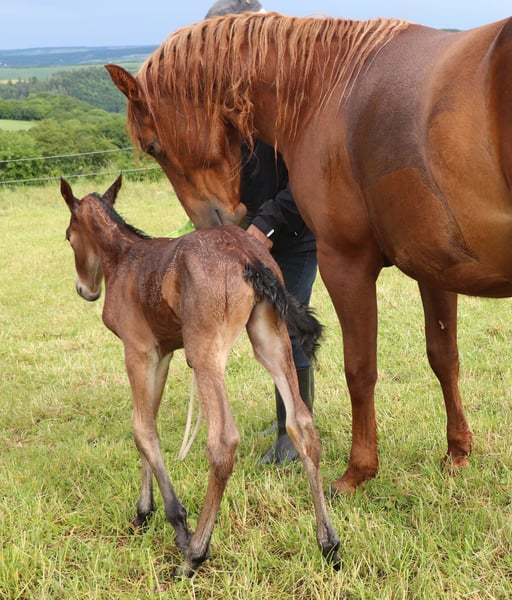 VALENTINA est très typée, bien construite et proche des humains. Elle deviendra un partenaire très fiable pour la vie pour le cavalier de loisir ou de compétition ambitieux. VALENTINA est éligible pour la DQHA & les régions-Futurity. Elle est préparée avec soin par nos soins aux méthodes de l'Natural Horsemanship pour sa future vie. Elle profite de sa vie en stabulation libre dans un grand pré au sein d'un troupeau mixte. Sous le bouton "Protocole d'entraînement", vous trouverez son niveau de formation actuel.
