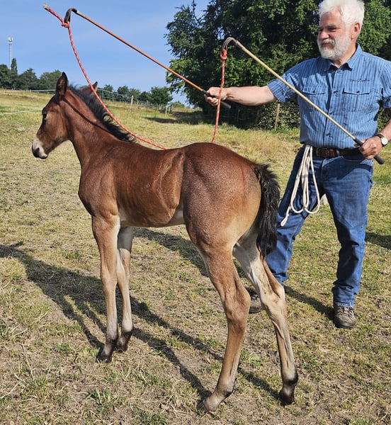 VALENTINA es muy típica, bien conformada y muy sociable con las personas. Será una compañera muy confiable para el jinete de ocio o competición ambicioso a lo largo de toda su vida. VALENTINA está habilitada para participar en DQHA y Futurity regionales. La estamos preparando cuidadosamente para su futura vida mediante métodos de Natural Horsemanship. Disfruta de su vida en un paddock abierto, en una amplia pradera, junto a una manada mixta. Bajo el botón "Protocolo de entrenamiento" puede consultar el estado actual de su formación.