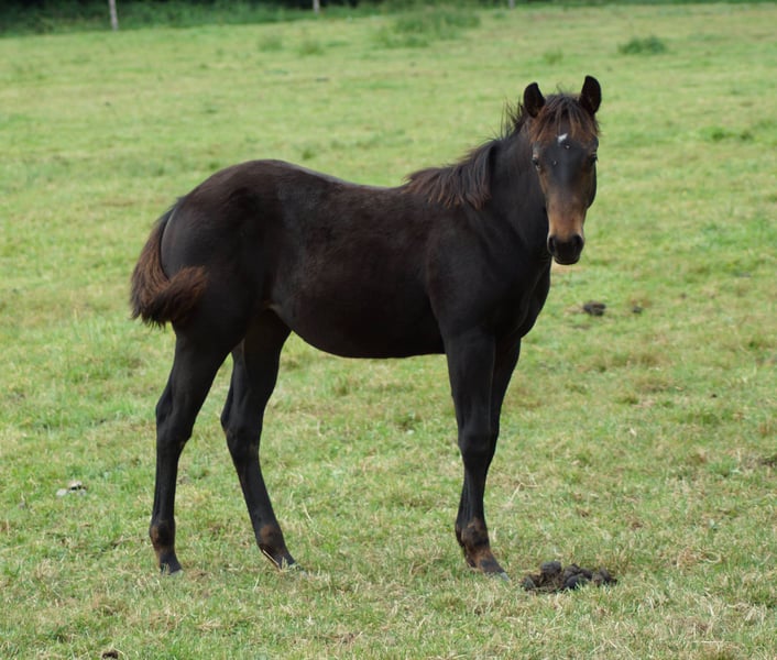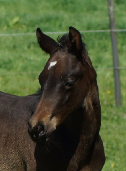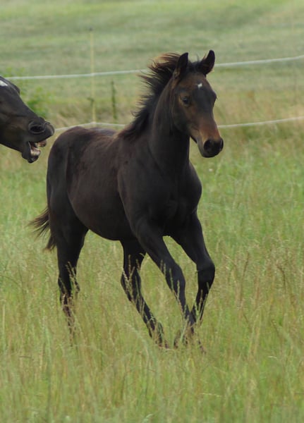 Jacs Electric Smoke alias Lucie est une magnifique pouliche mare issue du célèbre étalon américain de reining A Vintage Smoke, née d’une mère Jacs Electric Spark / Hollywood Dunit. Elle possède une conformation très correcte, des membres droits, une belle ligne du dessus et une carrure solide. Les mouvements de Lucie sont très athlétiques, et elle montre de manière ludique beaucoup de talent pour les stops, les pirouettes et les changements de galop. Lors de la foal show à Wenden, elle a obtenu une note globale de 82,36 % !!! Père : A Vintage Smoke Mère : Dun It In Sparkles, par Jacs Electric Spark / Hollywood Dunit Test génétique : 5 Panel N/N, IMM N/N. *2025 Nos poulains grandissent en troupeau avec leur groupe de naissance, sont régulièrement vermifugés et présentés au maréchal-ferrant. Plus d’informations sur www.brallentin-quarterhorse.de