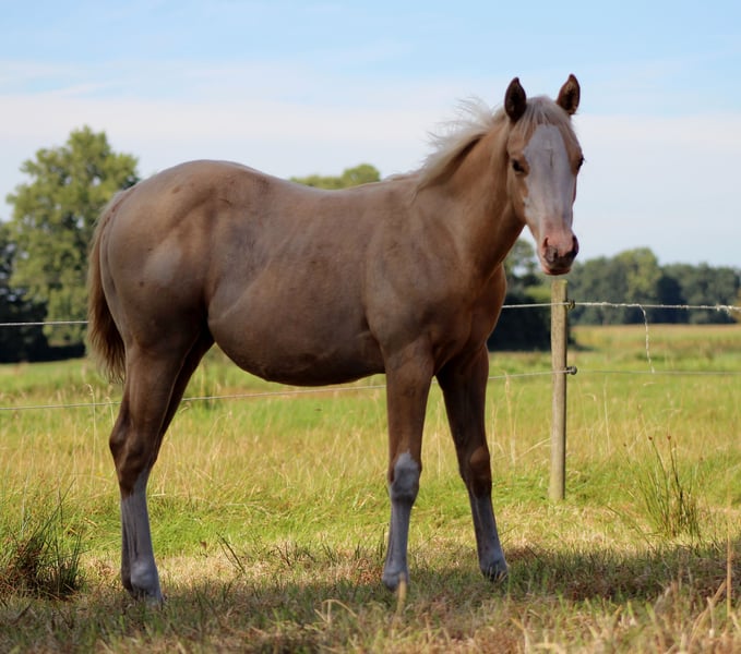 **For Sale: American Quarter Horse Mare** AQHA mare palomino splash born: 04/10/2025 PSSM N/N, GBED N/N, HERDA N/N, MH N/N, HYPP N/N, IMM N/N NRHA Germany SSP (paid up) Sire is TINKER WITH GUNS. He is a million-dollar sire ($1,254,000) and his lifetime earnings amount to $346,366. He was, among other achievements: 2012 NRHA Open Derby Co-Reserve Champion 2012 NRBC Open Derby Reserve Champion 2012 Cactus Reining Classic Open Derby Champion 2011 NRHA Open Derby Champion 2011 NRHA Futurity Shootout Champion 2011 NRBC Open Derby - 3rd Place 2011 NRBC Open Derby Prelim Champion 2011 Reining By The Bay Open Derby Champion 2011 Cactus Reining Classic Open Derby Champion 2011 NRHA #3 Open Reining Horse 2009 NRHA Open Futurity - 4th Place 2009 Scottsdale Classic Open Futurity Champion The dam of TINKER WITH ROSES is YELLOROSEOFTEXAS by GALLO DEL CIELO. GALLO DEL CIELO is an NRHA $4 Million Sire and NCHA Million Dollar Sire. His lifetime earnings are $28,437. His successes include NCHA Open Derby Finalist, Chisholm Trail Open Derby Finalist, Abilene Western Open Derby Finalist, and NRHA's #5 All-Time Leading Sire, Sire of Cutting, Reining, Reined Cow Horse Champions. Gallo Del Cielo is a full brother to Grays Starlight! For sale is a promising American Quarter Horse mare, born in 2025. With her striking palomino coat, broad white blaze, and a height of 151 cm, she is not only an eye-catcher but also a talented horse for reining due to her excellent pedigree. This young mare is characterized by her friendly and people-oriented nature. If you are interested or need further information, please feel free to contact me. Visit us and see for yourself this extraordinary mare! www.white-diamond-horses.de