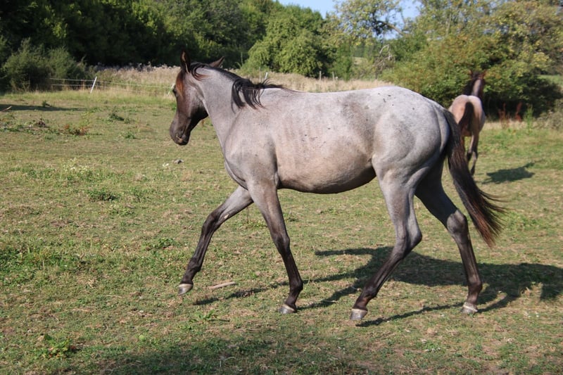 Peppy Knight O Lena is a friendly, affectionate young Quarter Horse with a stunning, highly sought-after coloring (blue roan). Born in April 2024, she is expected to reach a mature height between 14.7 and 15.1 hands. This little mare has excellent bloodlines for reining, ranch riding, and all-around riding, with pedigree lines including Hancock, Wimpys Smoking Gun, Wee Lenas Jac, and Peppy San Especial. Peppy Knight O Lena loves her cuddles, is well-behaved when haltered, and has a gentle demeanor. She is raised appropriately with her peers and is healthy (5-panel tested and immune system n/n via parent testing). At the time of sale, she is familiar with basic foal training, dewormed and vaccinated according to age, and comes with AQHA papers and an equine passport. The mare is a versatile mover, suitable for future sport and competition, but also makes a wonderful leisure partner. Come see her, fall in love, and take her home!
