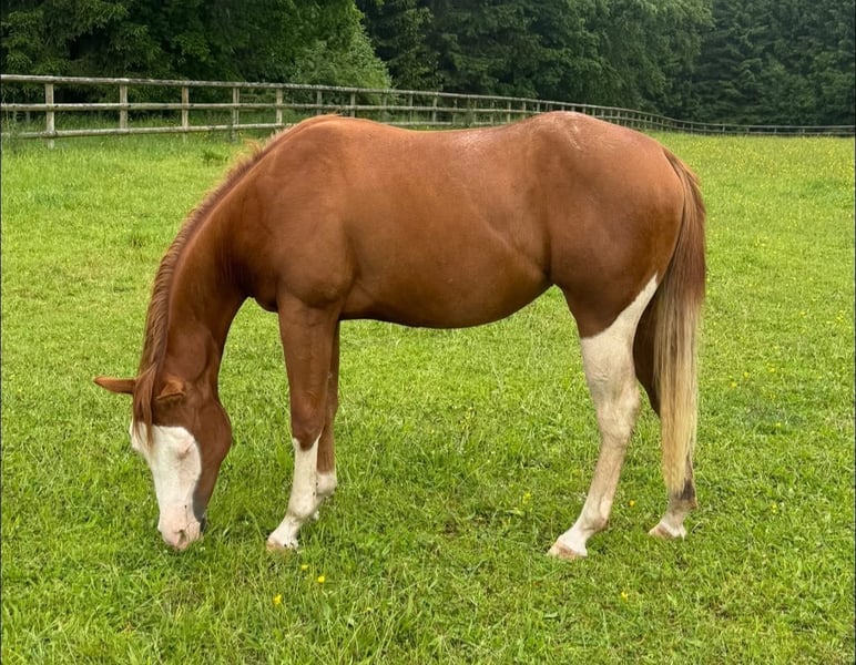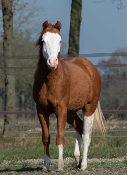 For your consideration Big Gun Ready to Run, aka Millie Millie is a 2023 AQHA-registered sorrel mare by Big Gun to Trash (Gunner) out of a John Gotta Gun (Spooks Gotta Gun) mare. Millie is a very friendly mare who would happily spend the entire day cuddling if given the chance. She has basic groundwork training, which she learned very quickly. Her bloodlines include some of the best reining horses, and we expect her to excel in that discipline, but she is versatile and can be trained in any direction you choose. Although she will grow a few centimeters, Millie is on the smaller side (approximately 1.39 m / 13.9 hh) and will need a handler suited to her size. Please note that Millie has not yet been started under saddle. Excellent x-rays are available, taken on August 27, 2025. Located in Belgium. For more information, please send me a message with your questions.