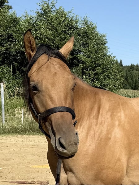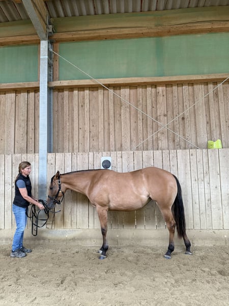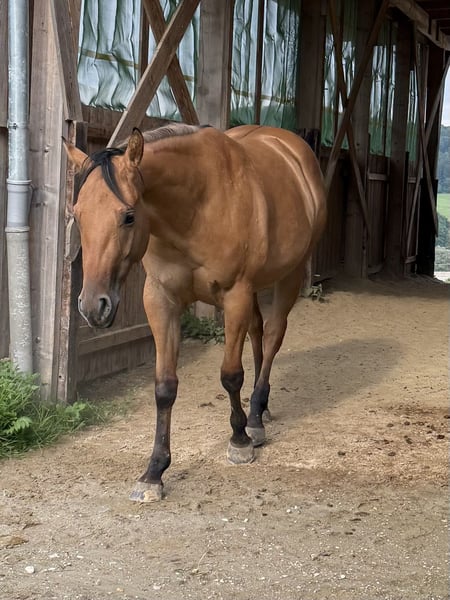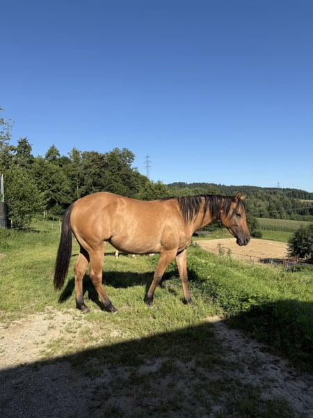 Verkaufe bildhübsche Stute aus 2023 Chocolate after dark * Gallo del Hollywood Aufgrund von einem Zufallsbefund an der Hufrolle weit unterm Wert. AVA ist ein unglaublich liebe nette menschenbezogene Stute die gern als Handpferd mit ins Gelände geht Sie ist korrekt und kräftig gebaut für mich absolut gesund und will schon sehr gerne gearbeitet werden.