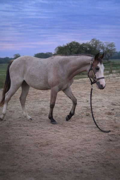 Boons Shining River ist eine junge Quarter Horse Stute mit Half-Quarter Horse Papieren, geboren am 23.04.2024. Sie hat die Farbe Bay Roan Overo, ist aktuell etwa 149 cm groß und wird voraussichtlich ein Endmaß von mindestens 155 cm erreichen. Sie überzeugt durch ihren harmonischen Körperbau, korrekte Stellung und vielversprechende Proportionen und ist ein echter Eyecatcher. Neben ihrer ansprechenden Optik besticht sie vor allem durch ihren lieben, menschenbezogenen Charakter. Die Stute ist ruhig, entspannt und aufgeschlossen, besitzt ein sanftes und freundliches Wesen, ist brav im Umgang, unkompliziert und lernt sehr schnell. Boons Shining River ist gut erzogen und zeigt sich im täglichen Umgang stets angenehm. Die Stute ist gesund, altersgemäß geimpft und entwurmt. Sie kennt die Box mit Weidehaltung und wächst unter besten Bedingungen in Ruhe auf. Ihre Versorgung erfolgt mit hochwertigem Aufzuchtsfutter und guten Mineralstoffen, was ihre Entwicklung optimal unterstützt. In ihrer bisherigen Ausbildung kennt sie bereits das Fohlen-ABC, geht als Handpferd mit ins Gelände, lässt sich problemlos verladen und fährt Anhänger. Sie ist den Umgang mit Menschen und verschiedene Alltagssituationen gewöhnt. Väterlicherseits verfügt sie über eine gute Cuttingabstammung (Vater: Redwhiteandblue Boon), kombiniert mit sehr guten Reiteigenschaften von der mütterlichen Seite. Dadurch eignet sie sich sowohl für den Sport- und Turnierbereich als auch für den Freizeitbereich. Boons Shining River ist ein junges Pferd mit Herz und Zukunft und ideal für jemanden, der ein Jungpferd von Beginn an begleiten, fördern und eine echte Partnerschaft aufbauen möchte. Sie ist ein vielversprechendes Nachwuchspferd für ambitionierte Reiterinnen und Reiter ebenso wie für liebevolle Freizeitreiter.