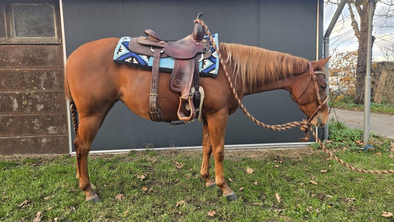 Looking for a nice home! 'Doc Mays Little Gun' or: "Lilly" Very sweet and cute 2023 mare! Dad: Big Gun to Trash Mom: Docs Mays Louisedunit Just started under saddle, easy to get along with. About 144 cm tall. For more info, please contact! leon@naturologic.nl or +31 642117588 (prefer whatsapp) Price and Video on request