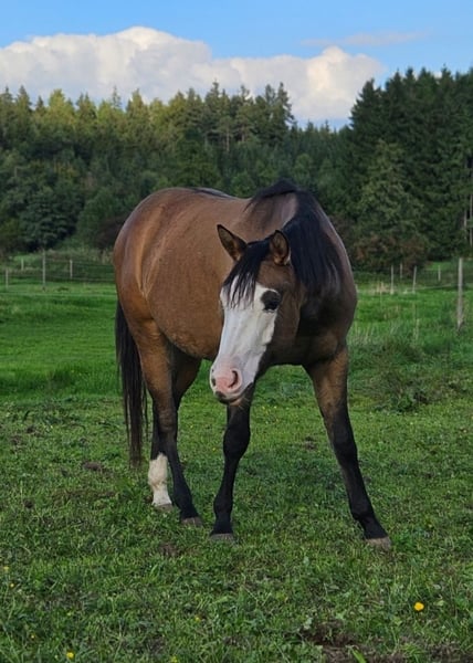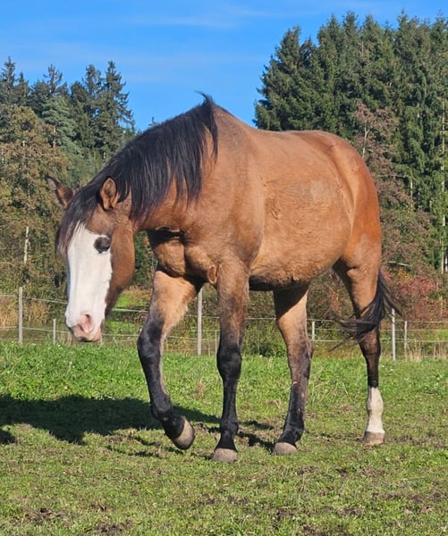 Wir bieten unsere wunderschöne Yuma zum Verkauf an. *️6 Panel n/n *️top Röntgenbilder *️geb. *4/23 *️bisher gut gehändelt, anlongiert *️nicht geritten *️Farbe Dun Splash (Ee Aa Dnd2) *️mega Oberlinie *️gute Bewegungen *️derzeit Stm 1,46/1,47m *️in der Herde aufgewachsen *️topsozial *️einfacher Charakter *️sehr menschenbezogen Yuma ist eine absolute Zuckermaus ohne Mängel. Sie wird in nächster Zeit in Grundausbildung gehen, dann wird der Preis angepasst. Die letzten Bilder sind Abstammung & Papa. Gerne beantworte ich alle weiteren Fragen! Kontakt 01721616272