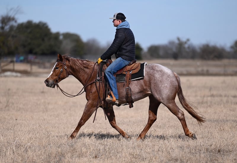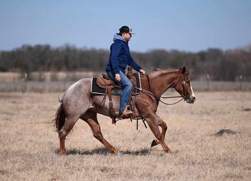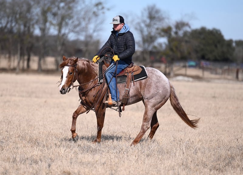 𝐍𝐀𝐓𝐄 𝐁𝐀𝐋𝐋𝐄𝐑𝐈𝐍𝐎 𝐇𝐎𝐑𝐒𝐄 𝐂𝐎'𝐬 ★ ℝ𝕀𝔸𝕋𝔸 𝔹𝕌ℂ𝕂𝕃𝔼 ★ 𝑺𝒉𝒐𝒘𝒄𝒂𝒔𝒆 Happening now thru SATURDAY | FEBRUARY 28th - Available EXCLUSIVELY on HorseBid's website! For more details and to register visit: www.Horsebid.com CONSIGNOR CONTACT: Nate Ballerino Horse Co 254-716-9588 LOCATION: Waco, TX BREED: Quarter Horse REGISTERED: Yes REGISTERED NAME: Blu Smokeshow COLOR: Red roan HEIGHT: 14.2 AGE: 3 GENDER: Mare Jazz, sired by Once In A Blu Boon, was started in a cow horse program. She lopes in frame both directions, takes both leads, watches a cow and spins. She’s also proving herself on the ranch—doctoring cattle, pen roping, and handling everyday ranch work with ease. She is a versatile mare that can to any direction. She is Eligible for the Foals Eligible for Gold Buckle Futurity, NCHA Stallion Stakes, Breeder's Invitational, Riata Incentive, Royal crown Roping, Stallion Stakes, NRCHA Cow Horse Incentive, Solo Select Rope Horse Incentive, Solo Select Reined Cow Horse Incentive. Please Call Nate Ballerino at 254-716-9588 with any questions. Nation wide shipping can be arranged.