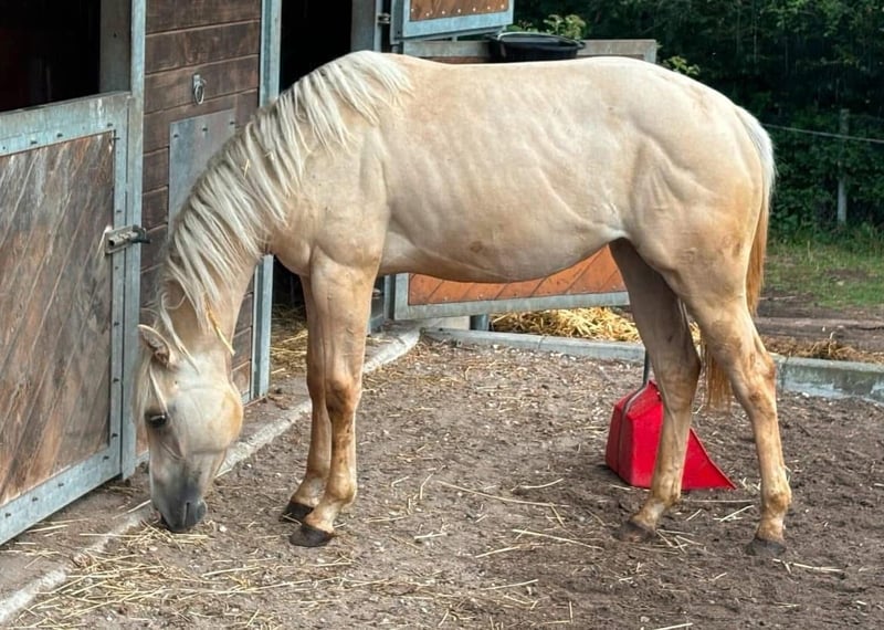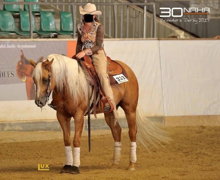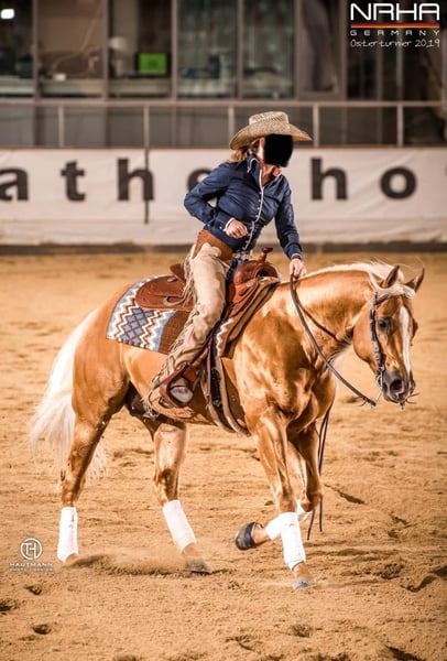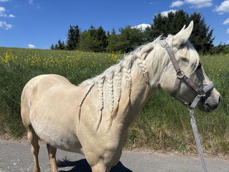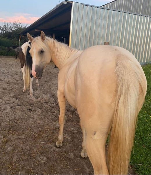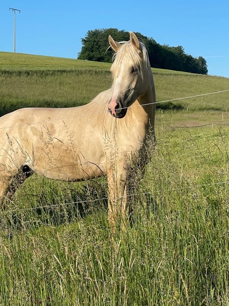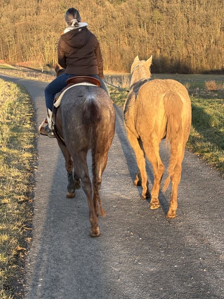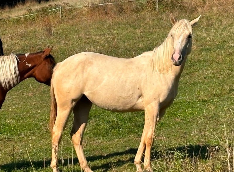 Zum Verkauf steht eine wunderschöne American Quarter Horse Stute im Dunalino-Farbtyp. Geboren im Jahr 2022, ist sie bereits jetzt ein echter Blickfang mit ihrem eleganten Erscheinungsbild und ihrem besonderen Wesen. **Merkmale:** - **Rasse:** American Quarter Horse - **Geschlecht:** Stute - **Geburtsjahr:** 2022 - **Farbe:** Dunalino - **Stockmaß:** 150 cm - **Einsatzbereich:** Western Diese talentierte Stute eignet sich hervorragend für den Westernsport und hat das Potenzial, sich in verschiedenen Disziplinen zu beweisen. Sie ist gut sozialisiert und hat einen starken Charakter, was sie zu einer idealen Partnerin für Reiter aller Erfahrungsstufen macht. Für Anfänger ist sie aufgrund ihres Ausbildungsstandes nicht geeignet. „Unicorn“ hat ein starkes Fundament und wirklich sehr stämmige Beine. Ihr dickes gesundes Röhrbein zeichnet sie aus. Sie geht im den Hänger, ist artig beim Hufe machen und ist regelmäßig geimpft sowie entwurmt. Seit dieser Woche steht sie auf der Vineyard Ranch für einen ersten leichten Beritt. Hier ist es uns wichtig, dass auf das Pferd eingegangen wird und sie langsam an das Leben als Reitpferd gewöhnt wird. Sie ist im Herdenverband artgerecht groß geworden und liebt einen Offenstall. Box ist nicht so ihr Ding aber muss sie sich jetzt auch im Reitstall dran gewöhnen. Ihre Mutter ist unsere beste Zuchtstute. Sie ist auch sehr gut unterm Sattel, wird von Kindern und Erwachsenen gleichmäßig geritten. Unser Wunsch wäre, dass sie bei Familie Bartmann jetzt erst mal die nächsten 3-4 Monate bleiben könnte. Der Preis steigt mit jedem vollendeten Monat. Sie ist 5 Panel N/N. Bei Interesse oder für weitere Informationen stehe ich Ihnen gerne zur Verfügung. Lassen Sie sich diese Gelegenheit nicht entgehen, ein tolles Pferd zu erwerben!