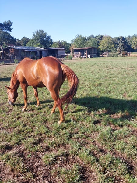 Schöne Quarter-Stute, 3 Jahre alt, eingeritten und geritten. Ein einfaches Pferd, cool im Kopf und ruhig bei Ausritten.