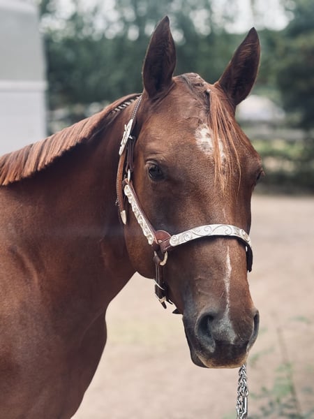 For Sale: American Quarter Horse Mare – Dark Chestnut, born 2023 This beautiful two-year-old mare is by Unxpected out of a direct Blazing Hot mare. Her final height is expected to be around 16.0 hh. She was born here, just like four of her half-siblings. All of them are known for their kind, fearless temperament and easy trainability. The siblings are successfully competing in sport; one half-brother recently became Maturity, DQHA, and NSBA Champion Hunter Under Saddle at the Q25. Phoebe has been handled and ground-trained so far. She is ready to show in in-hand trail and longe line. During the summer, she was Reserve Futurity Champion in longe line and co-Reserve Champion in trail. She is farrier- and loading-friendly, regularly vaccinated and dewormed. Current clean X-rays are available.