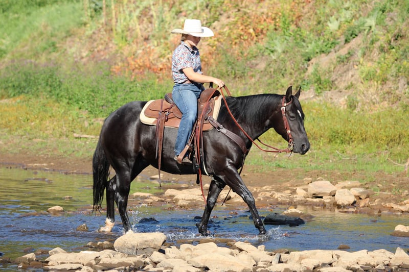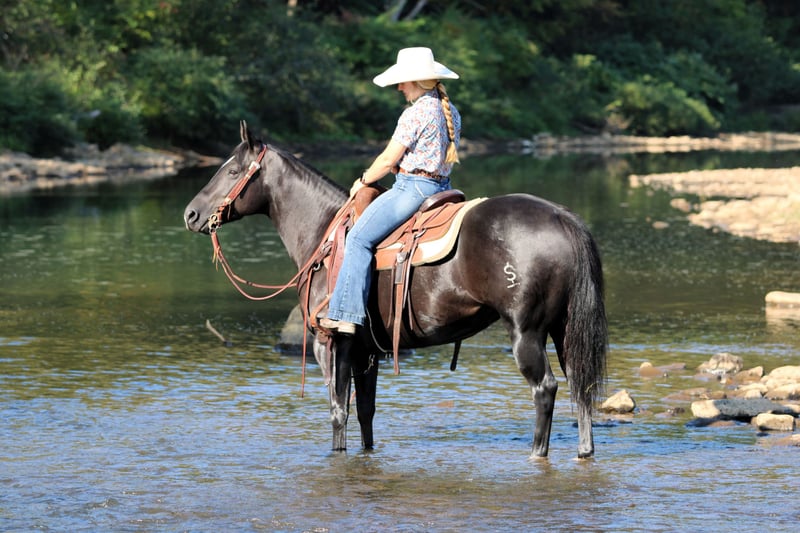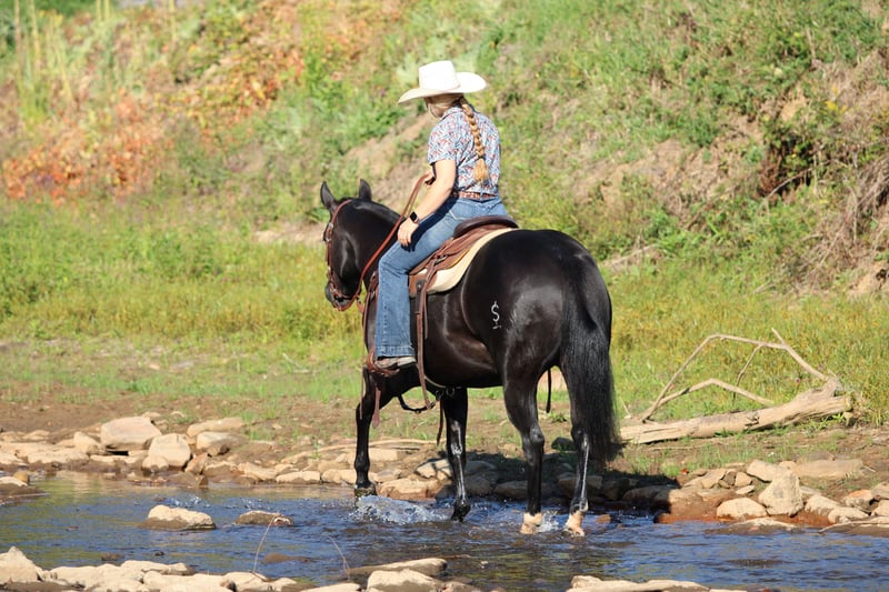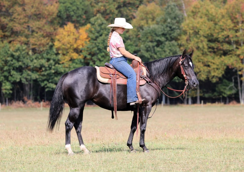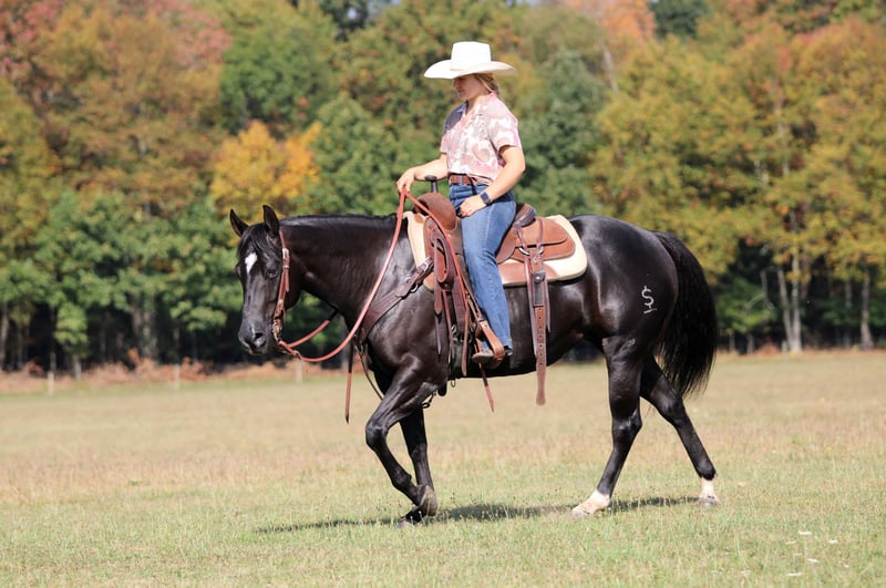 🍂 𝓐𝓾𝓽𝓾𝓶𝓷 𝑨𝑳𝑳 𝑺𝑻𝑨𝑹 𝑳𝑰𝑵𝑬𝑼𝑷 🍂 Happening now thru MONDAY | OCTOBER 6th - Available EXCLUSIVELY on HorseBid's website! For more details and to register visit: www.Horsebid.com CONSIGNOR CONTACT: Wagner Horse Farm 814-564-2117 LOCATION: Clarion, PA BREED: QH REGISTERED: Yes REGISTERED NAME: KJ Leo Black Pine COLOR: Black HEIGHT: 14.1 AGE: 4 GENDER: Mare KJ Leo Black Pine or as we call her around the barn Princess is a Registered American Quarter Horse Super Good Looking Black Mare. If your looking for a super classy and good looking but also super quiet and gentle horse that also rides very good then Princess is exactly that! Princess can go in any direction! She is a great trail horse. Has been used to push cattle around the farm and also rides nicely in the arena . The skys the limit for this good aged mare. She goes anywhere you ask her to go on the trail and is very quiet and level headed. Nothing phases her or bothers here. She is very reliable and seasoned beyond her years. Very friendly and loves attention. She is the kind of horse that is easy to bond with . Good for the farrier and vet. Princess is very easy!! Just saddle her up and go enjoy a nice relaxing ride. She will ride laid back and quiet or if you want to go do a job she will get up and go when asked. She always rides off quiet and is good with time off. Call or Text Glory at 814-564-2117. We can help arrange delivery anywhere in the United States. Thank You and God Bless