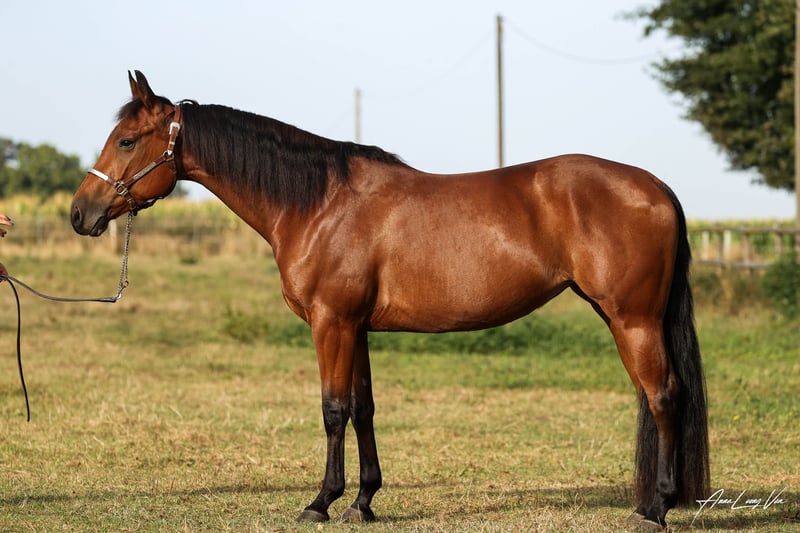 Whataruftoughsally is a stunning and expressive Quarter Horse mare, foaled in April 2021, standing approximately 14.6 hands. She impresses with her well-developed conformation, a solid foundation, and a sporty build. Character-wise, she is an exceptionally affectionate, people-oriented, and charming horse, always approachable, friendly, and cuddly in handling. She exhibits strong motivation in work, learns quickly, and is eager and diligent; however, she can also be sensitive, which is why she is not suitable for beginners given her current training level. Sally has a solid Western riding background and has already been introduced to EWU young horse competitions in Reining and Ranch Riding disciplines this year. She is also enrolled in the EWU young horse program and boasts excellent Reining pedigree, including lineage from Ruf Dun It and Smart Chic Olena, promising a successful sporting future. Her rideability is refined, her potential great, making her an ideal prospect for competitions where she can further excel with proper support. She is in good health: radiographs of her hoof capsule and hock joints show no abnormalities. She is vaccinated, dewormed, shod, and load-trained, familiar with both box and herd life. All AQHA papers and her equine passport are available. Due to a minor health issue, she is offered at a significantly reduced price. With her combination of excellent pedigree, work ethic, eagerness to learn, and a warm personality, she is the perfect horse for someone seeking a young, talented, and partnership-oriented mount to develop together for the future.