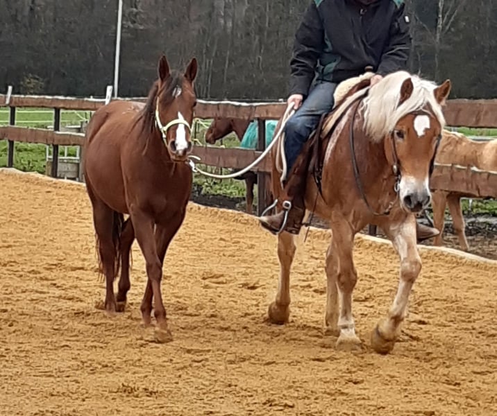 Hübsche Quarter Horse Stute aus 2021, Chestnut mit langer Mähne, Stm ca 1,50m, für den gehobenen Freizeitbereich zum weiter fördern in Jungpferde erfahrene Hände abzugeben, aus Offenstallhaltung, gut sozialisiert, geimpft, entwurmt, Zähne frisch gemacht, 2024 vom Boden vielseitig gearbeitet und leicht angeritten, dann Fohlenpause. Ihr Palomino Hengstfohlen aus 2025 kann besichtigt werden und wird demnächst abgesetzt. Die Ausbildung unter dem Sattel geht nun weiter. Tolle Zuchtstute 6 Panel NN, Reining/Cowhorse-Linie, Mister Dual Spring x Keen Freckles, Näheres gerne bei ernsthaftem Interesse unter 017696487926.. Preis VB, mit weiterer Ausbildung steigend