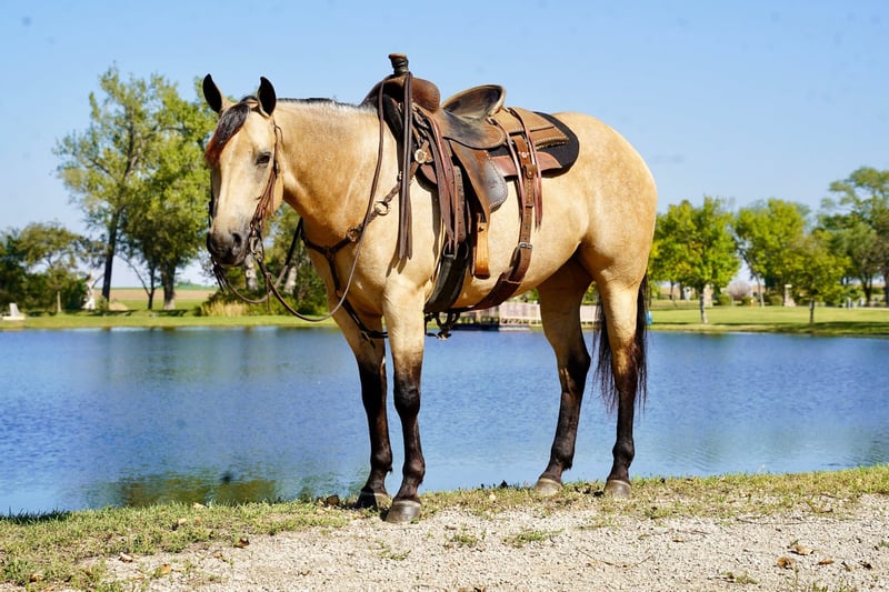 🍂 𝓐𝓾𝓽𝓾𝓶𝓷 𝑨𝑳𝑳 𝑺𝑻𝑨𝑹 𝑳𝑰𝑵𝑬𝑼𝑷 🍂 Happening now thru MONDAY | OCTOBER 6th - Available EXCLUSIVELY on HorseBid's website! For more details and to register visit: www.Horsebid.com CONSIGNOR CONTACT: Pam Petersen 605-838-7124 LOCATION: Corsica SD BREED: AQHA REGISTERED: Yes REGISTERED NAME: Zans War Sensation COLOR: Buckskin HEIGHT: 15 AGE: 4 GENDER: Mare Zans War Sensation “Aspen” is a drop dead gorgeous kind gentle mare that loves people and attention, she comes running when called, she is 4 but acts like a teenage horse she has a great handle, she sidepasses goes thru obstacle courses, rides down trails amazing, traffic safe, good in a group or alone, rides in town, down hwys, she is not spooky, we have played horse tag on her, she is very athletic and always willing, she has no buck rear kick or bite at all, she has tracked cattle, and also started on tricks will lay down and step up to mounting block or fence on cue for mounting, the kids can climb all over and under her, you can ride her with just a string around her neck, and rides bareback fantastic, she is very soft in the face and neck reins nicely, she rides extremely good in arena, walk trot lopes around like she floats, she saddles and bridles good, she is good for farrier and vet, loads and unloads great she will go on slant load and back off or good for open livestock trailer. Call or Text 605-838-7124