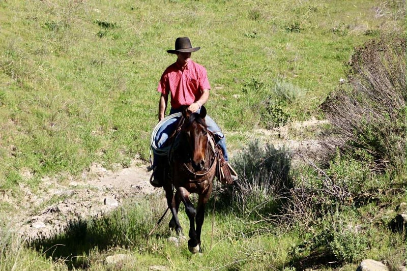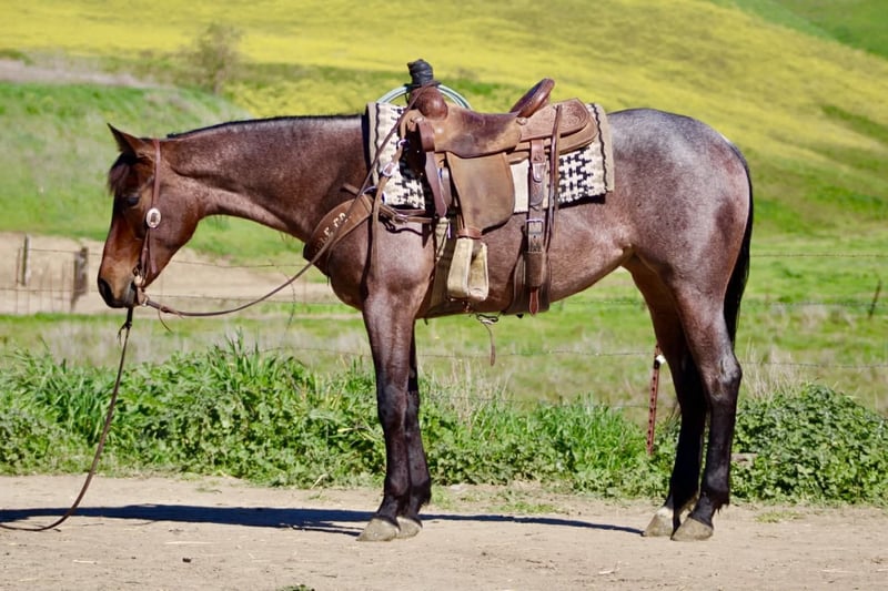 "AVAILABLE ON ONLINE HORSE AUCTION AT www DOT PlatinumEquineAuction DOT com BIDDING OPEN NOW thru SUNDAY | FEBRUARY 22ND! *Final price will be determined on auction site* CONSIGNOR CONTACT INFO: Longhorn Ranch 831-537-1915 LOCATION: Paicines, CA Annie Oakley Roan Mare • 4 Years Old • 15 Hands Annie Oakley is what happens when natural beauty, good training, and a standout mind all land in the same horse. She is talented, genuine, and enjoyable in a way that is immediately apparent — a mare that feels good to sit on, easy to understand, and rewarding to ride. Her rich roan coat, frosted mane and tail, and balanced build make her eye-catching, but her real value shows up when you swing a leg over. For a four-year-old, Annie Oakley is remarkably broke and educated. She rides soft, stays correct through her body, and carries herself with purpose. She bends and shapes willingly, lopes around with a smooth, easy rhythm, and offers a nice sliding stop and a stylish turnaround. She feels steady, confident, and far along for her age. Annie Oakley has a good head on her shoulders. She is gentle, kind, and honest, with a natural desire to do right by her rider. She is safe for a variety of rider levels and adjusts easily to who is in the saddle. She meets you at the gate, drops her head for the bridle, and goes to work with a willing attitude. She is the kind that makes riding simple and enjoyable. She has been tracking cattle, shows a lot of interest, and has already been gathering. Annie Oakley displays plenty of natural cow sense and feels like a mare that will continue to excel with cattle work as she goes forward. She is well exposed and seasoned beyond her years. Bridges, tarps, pool noodles, and obstacle courses are all handled quietly. New places and new tasks are met with curiosity and composure. Out on the trail, Annie Oakley is steady and sure-footed. She travels through hills, crosses water, and handles wildlife and changing scenery with ease. She is just as enjoyable outside the arena as she is inside it. She is good in traffic, stands tied quietly, clips easily, is good for the farrier, hauls well, and does well in both a stall and pasture. Annie Oakley is the kind that earns her keep. The kind that gets ridden first. The kind you build a program around. A truly special young mare with a bright future ahead of her. Longhorn Ranch Paicines, California Dina – 831-537-1915 Shipping is available anywhere we have reputable haulers to help get your new horse safely to your doorstep.