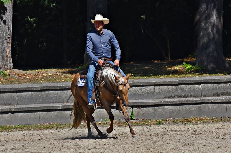 MP Shome Boom Boom Great Palomino mare from the successful stallion USS N DUN IT (Elias Ernst - Ernst Performance Horses) out of a Jacs Great Spirit/Hollywood Cody Jac/Reed Joe Hancock mare. There isn't much to say about the father's successes: he has just recently become World Champion again in 2025 at the age of 20! The mother has been successfully shown in both Reining and Ranch classes. She is now also successful in Working Equitation. MP Shome Boom Boom herself has been very gently trained. She is well-grounded and a total buddy mare. The maneuvers have been introduced but not fully trained. She shows great talent. In 2023, the mare secured 3 Futurity Champion titles. In 2024, at her first show under saddle, she achieved 3rd place (Bronze) in the Ranch Riding Futurity. This year, she was spontaneously shown in a Class A Working Equitation and secured 6th place. At her age, MP Shome Boom Boom is a reliable horse. She is well-behaved in the arena, on the flat, in the field, and on the road. Even after longer breaks without long warm-up - just get on, ride off, and come home safely. She trailers well alone or with others. She is easy to handle, at the farrier, etc. MP Shome Boom Boom has some cattle experience and is equipped with good awareness and pleasant motivation. She is not fearful or hesitant. Riding without a saddle? Kids owning her? No problem for this wonderful mare. MP Shome Boom Boom is bred by us and should be used as a young competition horse. Unfortunately, at 145 cm, she is too small for a 2-meter tall man in the long run - therefore, we are parting with this gem. We are truly looking for a suitable forever home for her. With us, she is unfortunately quite "underutilized" and receives significantly too little attention. This is not an urgent sale or anything - the perfect place is more important to us than the final price. Location: NRW near Cologne For more information, preferably by phone/WhatsApp at 01755662622