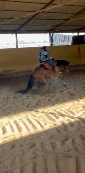 Per mancanza di tempo, vendo una cavalla da reining di 4 anni. (2021) Conosce tutte le manovre, che necessitano ancora di qualche perfezionamento. Guns r for shooting x Joy Scarface (Topsail Cody producer mare) È un'eccellente futura fattrice. Cavalla molto fredda ma ferma da giugno, quindi da riprendere!