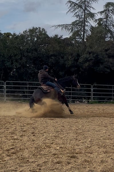 LA CUSTOMBLACKSPOT – AQH Stute – 4 Jahre Colonel Shining Gun x PC Customblack Widow Zum Verkauf steht LA CUSTOMBLACKSPOT, 4-jährige American Quarter Horse Stute mit großer Substanz, korrekt gebaut und gesund. 🐎 Herausragende Abstammung ✔️ Vater: Colonel Shining Gun ✔️ Mutter: PC Customblack Widow, das Erfolgspferd von Manuel Cortesi ✔️ Über 50.000 € Preisgeld, in Italien ungeschlagen ✔️ Einzige Stute aus der Mutterlinie (Mutter verstorben) ✔️ Sehr interessant auch als Zuchtstute Die Stute hat bisher keine Turnierstarts, ausschließlich aufgrund von Unstimmigkeiten zwischen den früheren Miteigentümern – nicht aus gesundheitlichen oder leistungsbedingten Gründen. 🔥 Ausbildung & Perspektive • Alle Reining-Manöver auf Plus-Niveau • Aktuell in Vorbereitung für das Derby 2026 • Extrem ruhiges, zuverlässiges Mindset • Sehr lernfähig und einfach im Training, auch für ambitionierte Amateure geeignet 📐 Exterieur • Große, kräftige Stute • Stockmaß ca. 1,60 m • Kristallblaue Augen 🩺 Gesundheit • Für jede tierärztliche Untersuchung garantiert • Papiere vollständig und in Ordnung 💰 Sehr attraktiver und marktgerechter Preis in Relation zu Abstammung, Ausbildung und Perspektive. 📍 Standort: Italien 🔒 Verkauf ausschließlich an seriöse und überprüfbare Käufer. 📩 Anfragen bitte mit vollständigen Angaben. LA CUSTOMBLACKSPOT – AQH Mare – 4 years old Colonel Shining Gun x PC Customblack Widow For sale LA CUSTOMBLACKSPOT, 4-year-old American Quarter Horse mare, big framed, correct, sound and well built. 🐎 Outstanding pedigree ✔️ Sired by Colonel Shining Gun ✔️ Out of PC Customblack Widow, the mare ridden by Manuel Cortesi ✔️ Over €50,000 in earnings, undefeated in Italy ✔️ Only female offspring from the dam (dam deceased) ✔️ Extremely interesting also as a broodmare prospect The mare has never been shown, solely due to disagreements between former co-owners, not for health or performance reasons. 🔥 Training & Potential • All reining maneuvers consistently at plus level • Currently in preparation for the 2026 Derby • Extremely calm, honest and reliable mindset • Very easy to train and quick learner, suitable also for ambitious amateurs under guidance 📐 Conformation & Appearance • Big, strong mare • Approx. 1.60 m (15.3 hh) • Crystal blue eyes 🩺 Health • Guaranteed for any veterinary examination • Full documentation in order 💰 Very attractive and competitive price, considering pedigree, training level and future sport/breeding potential. 📍 Located in Italy 🔒 Sale only to serious and verifiable buyers. 📩 Please contact with complete and clear information.