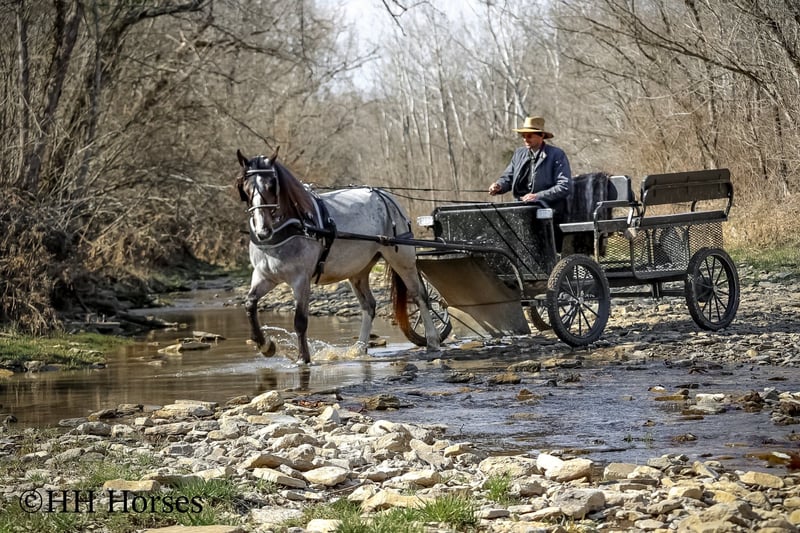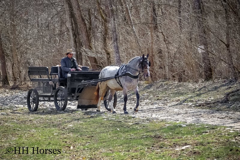 ONLINE AUCTION Place your bids at www.PlatinumEquineAuction.com Starting Bid $3500 Auction ends March 23rd, 2025 Need a new saddle? Check out White Rock Saddles on our website or Facebook! This is “GYPSY ROSE”, a very attractive, rare colored, well broke BAY ROAN GYPSY VANNER QUARTER HORSE crossbred mare that rides and drives. This mare is 5 years old and stands 14.1 hands tall. She is in foal to a Gypsy Vanner stallion for a June 2025 baby. She has had professional training and rides around like one should. She lopes nice collected circles, catches her leads, stops on whoa, backs up for any distance, and has a nice turnaround. This mare has been driven on the main roads and is traffic safe. She moves out with ease and is a very comfy ride that is attentive to her riders cues. She is responsive and fun with lots of feel. She will cross water quietly under harness or tack. This mare has been through the cross country driving courses. She will trail ride anywhere you want to go bravely. She has been used out in the pastures to gather cattle and driven to church on Sundays. She is versatile, well trained, smart, cool colored, and going to have a Gypsy foal soon. She is the right size, has the right temperament, and is a unique find with her color. She stands to harness, hitch, tack, mount, and groom. Don’t miss out on a fun 2 for 1 opportunity. Located in Flemingsburg, KY. For more info or to make a Buy It Now Offer contact HH Horses Erin 304-238-4155. ONLINE AUCTION Place your bids at www.PlatinumEquineAuction.com Starting Bid $3500 Auction ends March 23rd, 2025 Need a new saddle? Check out White Rock Saddles on our website or Facebook!