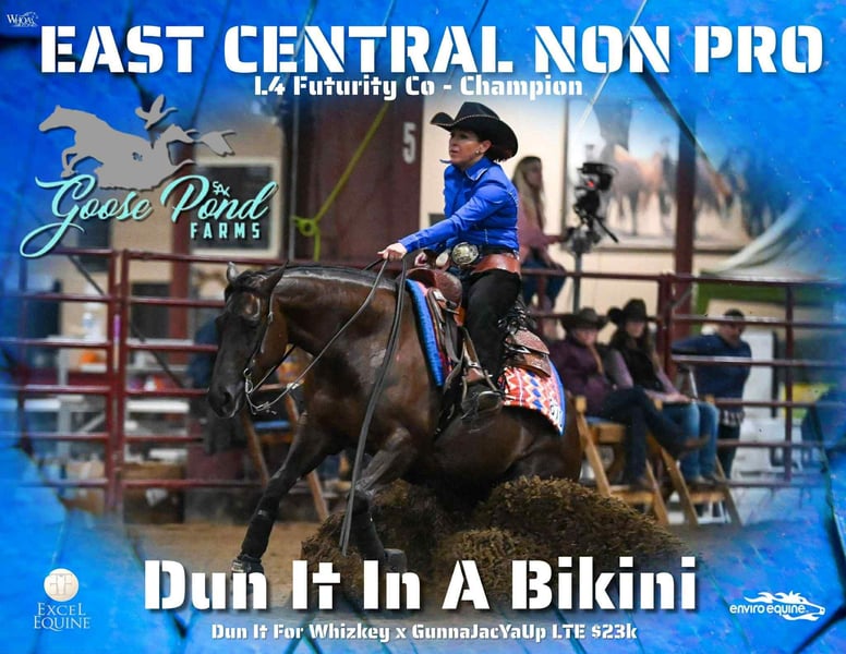 🎲𝓽𝓱𝓮 𝐑𝐈𝐃𝐄𝐑'𝐒 𝓒𝓱𝓸𝓲𝓬𝓮🎲 Happening now thru MONDAY | NOVEMBER 17th - Available EXCLUSIVELY on HorseBid's website! For more details and to register visit: www.Horsebid.com CONSIGNOR CONTACT: Premier Horses LLC 417-761-2580 LOCATION: Buffalo, Missouri BREED: Quarter Horse REGISTERED: Yes REGISTERED NAME: Dun It In A Bikini - NRHA Money Earner by Dun It For Whiskey COLOR: Chestnut HEIGHT: 14.2 AGE: 6 GENDER: Mare Dun It In A Bikini, affectionately known as “Tootsie,” is a gorgeous, shapey-made liver chestnut mare with the pedigree, talent, and temperament to fit a wide range of riders. She’s sired by Dun It For Whiskey (NRHA LTE: $257,816; progeny earnings $814,484+), the highest-earning son of Topsail Whiz, and out of Gunnajacyaup (NRHA LTE: $23,400; progeny earnings $3,500+ with only four offspring). With that kind of foundation, it’s no surprise that Tootsie has already proven herself both in and out of the show pen. She has NRHA lifetime earnings of over $2,725, having earned money in the Level 3 and Level 4 Non Pro divisions, and proudly holds the title of East Central Level 4 Non Pro Futurity Champion. Solid in the show pen and as honest as they come, Tootsie is the kind of mare you can depend on every ride. She’s youth-friendly, easy to get along with, and would make an excellent green or rookie horse for someone looking to step confidently into the show pen with style and success. Outside the arena, Tootsie is as versatile as they come. She loves getting out on the trails—crossing bridges and creeks, going through gates, tackling obstacles, and even checking the mailbox without hesitation. She’s also very cowy and has been used to gather and sort cattle as well as rope and doctor calves, showing her willing attitude and quiet confidence in any setting. Tootsie is a joy to have in the barn—sweet-natured, gentle, and easy to handle in every way. She has passed a pre-purchase exam and has X-rays on file, making her ready to go straight to the show pen, the ranch, or the trails with her next partner. If you’re looking for a beautiful, talented, and trustworthy mare with a proven pedigree, show record, and a heart of gold, Tootsie checks every box.