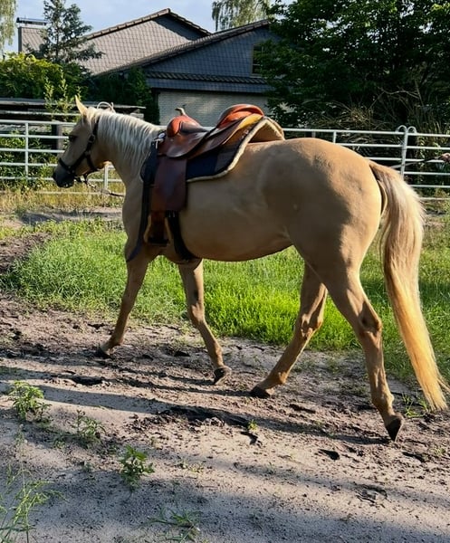 🌸 Hallo, ich bin Pepper – vielleicht deine neue beste Freundin? 🌸 Mein Name ist Peps Red Pepperoni, aber alle nennen mich einfach Pepper oder Peps. Ich bin eine 6-jährige Quarter Horse Stute im wunderschönen Palomino-Kleid und habe ein Stockmaß von ca. 147 cm. Ich habe schon eine Grundausbildung genossen, lerne super gerne Neues und freue mich immer, wenn man sich mit mir beschäftigt. Ich bin wissbegierig, aufmerksam und habe ein sanftes Wesen. Wenn Kinder in meiner Nähe sind, schnuppere ich neugierig und bleibe ganz brav. Momentan stehe ich im Offenstall, werde regelmäßig entwurmt und der Schmied schaut alle 6 Wochen vorbei – also bin ich bestens versorgt. Meinen Equidenpass bringe ich natürlich mit. Leider fehlt meiner jetzigen Besitzerin mit drei kleinen Kindern die Zeit für mich. Deshalb suche ich nun einen Menschen, der Lust hat, mit mir gemeinsam meinen Weg weiterzugehen und mich fördert. ✨ Ich wünsche mir ein liebevolles Zuhause, in dem ich zeigen darf, wie viel Freude ich machen kann. Vielleicht bei dir? ✨ 📩 Wenn du mich kennenlernen möchtest, freue ich mich auf deine Nachricht!