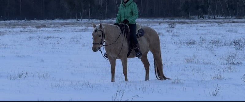 Geboren 2020, PSSM1HYPP,HERDA,GBDE,MH,MYHM : N/N Farbe: Palomino Roan. Ausbildungsprogramm Parelli Natural Horsemanship, Bodenarbeit, Geländefreizeitreiten. Sie geht alleine in das Gelände /Wald, Straßenverkehr sicher. Alle Sparten des Westernreitens stehen offen. Wird mit langem Zügel geritten. Bei dem Vorbesitzer hatte sie ein Fohlen geboren. Unsere Stute ist gesund, geht Barhuf, steht im Offenstall. Ein ganz neuer passender Markensattel könnte mit erworben werden. Bei Interesse alles persönlich.