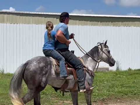 ⚜ The HERITAGE Classic ⚜ Happening now thru MONDAY | AUGUST 11th - Available EXCLUSIVELY on HorseBid's website! For more details and to register visit: www.Horsebid.com CONSIGNOR CONTACT: Triple T Farms 417-247-7395 LOCATION: Summersville, MO BREED: AQHA REGISTERED: Yes REGISTERED NAME: Smile Its A Dollar COLOR: Grey HEIGHT: 14.2 AGE: 7 GENDER: Mare 💵 Dollar 💵 Dollar is everything you could want or need in one package! She has the looks, personality, and skills for any level of rider. She is a 7-year-old registered grey mare that turns heads wherever she goes. With her unique coat and charming demeanor, she captures hearts instantly. Dollar has a strong will to please and an excellent handle. My 11-year-old niece has ridden her all over the farm, and my three-year-old daughter rides her confidently in the indoor arena, she will follow you around like a loyal puppy when my daughter is on her back. She’s been ridden by all levels of riders, from beginners to experienced and she handles it all with grace. Whether bareback or with a passenger, she’s shown versatility and poise. Dollar neck reins, side passes, and is traffic-safe. We’ve taken her through various terrains, on busy highways, and into town, and she takes everything we’ve thrown at her in stride! Her calm nature makes her ideal for any adventure. She is also animal-safe; we’ve taken our Australian shepherd along for rides, and she did wonderfully with that as well. This sweet mare stands great for the farrier and is a breeze to bathe! My 9-year-old and niece have confidently helped with baths, and she remains patient and gentle throughout. Dollar can be stalled or left in the field, and she adapts easily to either environment without any fuss. Dollar loves to please and is eager to learn, making her perfect for a beginner rider looking to grow and learn alongside a trustworthy companion. Come see Dollar for yourself to experience all that she has to offer! You won’t be disappointed—she could be the perfect addition to your family!