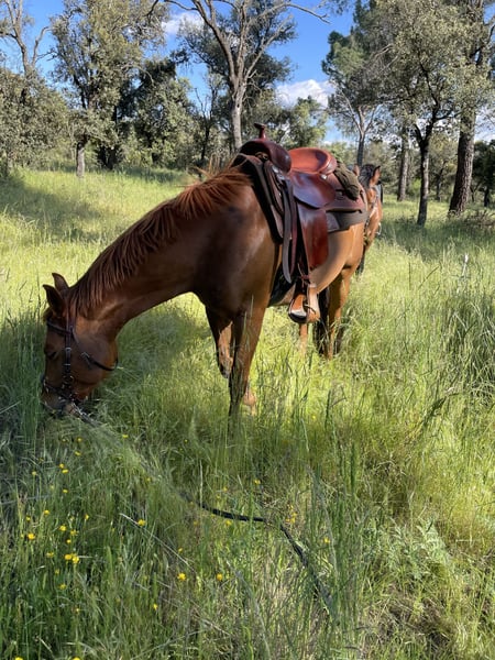 Compartir caballo en el norte de Madrid por dos veces a la semana. Semi pupilaje. Quarta de milla con 7 anos , mide 1.47, y un caracter muy amable. No se asusta de nada. Basico de training, normalmente vamos de ruta al pardo, tenemos round pen y no tenemos pista. Norte de Madrid cerca de estación Pitis. Solo gente seria.