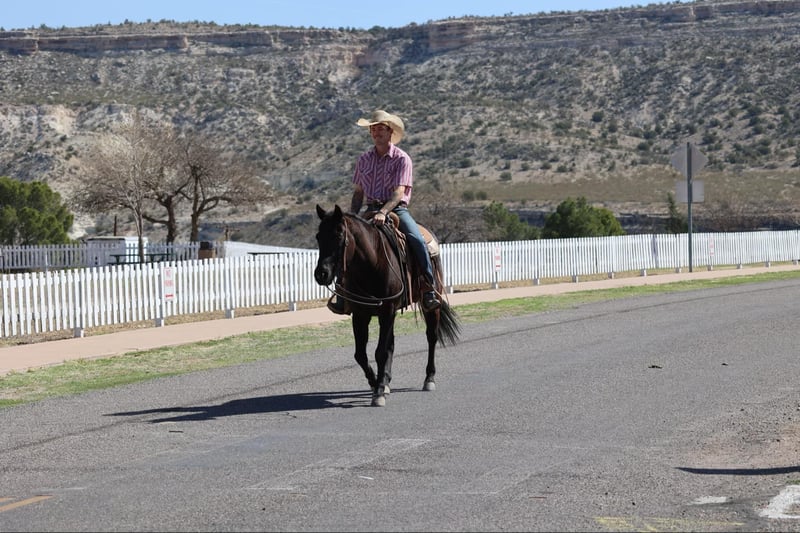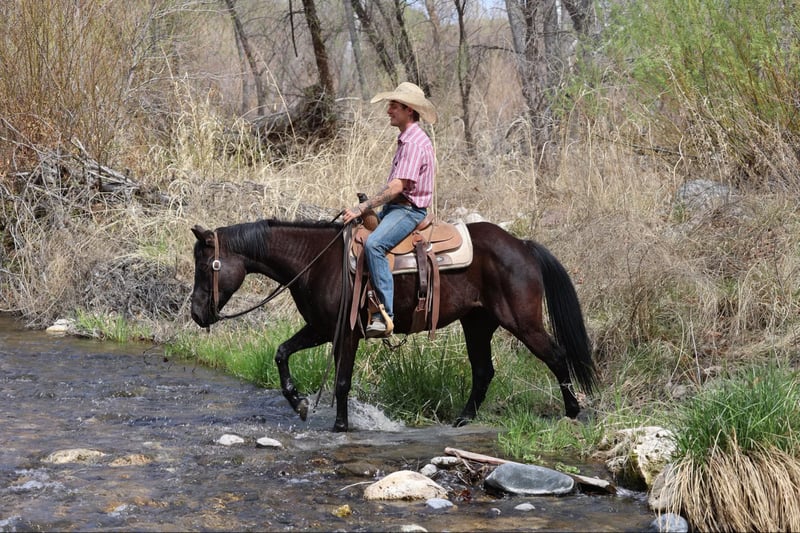 ONLINE AUCTION Place your bids at www.PlatinumEquineAuction.com Starting Bid $3500 Auction ends April 13th, 2025 Need a new saddle? Check out White Rock Saddles on our website or Facebook! Beauty is a grade 7 year old mare standing 14.2hh. This black mare is as handy and gentle as she is gorgeous!! Beauty has been used around ranches all over Arizona and New Mexico her whole life, making her very versatile, experienced, and absolutely safe and gentle!! Beauty is not only surefooted and great to ride outside, she’s also just as fancy in the arena!! Beauty has done absolutely every job a horse can do around a ranch. Rode countless miles of fence, drug calves to the fire, doctored lots of cattle alone and with a crew making her proficient at working a rope, sorted pens, worked gates, you name it and Beauty has done it!! This magnificent mare will cruise right along no matter what country she’s in or what comes up in front of her. Rough rocky terrain, steep slippery slopes, flowing water, fallen logs, thick brush, busy traffic. No matter the obstacles, Beauty will bulldoze on through it safely and surefooted as can be, watching her every step. Beauty is just as much of a blast to ride in the arena as she is to ride outside! She will walk, trot, and lope both ways with ease on a draped rein as well as neck rein and has a magnificent stop! She’ll even ride bareback and bridless!! Beauty will meet you at the gate to catch whether she’s in a 12×12 stall or a big turnout. She’s also easy to groom, saddle, bridle, bathe, shoe, and load!! Whether you’re looking for a super gentle, gritty mare to go do a long days work or a laid back, safe and gentle ride to mosey on down the trail then look no further, Beauty is your gal!! Will come with a clean coggins and health!! Transport can easily be arranged anywhere in the US!! Located in Camp Verde, AZ. Contact D/C Equine Services Dallas 804-822-2233 Natasha 928-460-2625. ONLINE AUCTION Place your bids at www.PlatinumEquineAuction.com Starting Bid $3500 Auction ends April 13th, 2025 Need a new saddle? Check out White Rock Saddles on our website or Facebook!