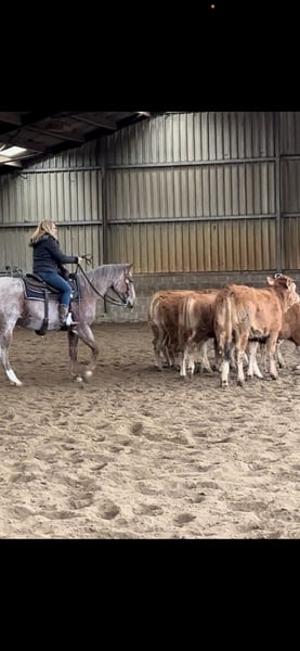 Te koop: Amerikaanse Quarter Horse merrie – Roan-Red, geboren in 2018 Deze elegante Amerikaanse Quarter Horse merrie, geboren in 2018, staat te koop. Met haar indrukwekkende Roan-Red vacht weet ze te imponeren door haar nobele uitstraling en veelzijdige vaardigheden. Haar stokmaat bedraagt 1,54 m, waardoor ze een compacte maar krachtige partner is. Ze is ervaren in cutting en toont daar een grote bereidheid tot presteren en een goed leervermogen. De merrie is vriendelijk in de omgang, gezond en regelmatig gevaccineerd en ontwormd. Ze is geschikt voor zowel ambitieuze recreatieruiters als voor sporters die waarde hechten aan veelzijdigheid. Bij interesse of voor meer informatie ben ik graag bereid u te helpen. Bezichtiging mogelijk op afspraak.