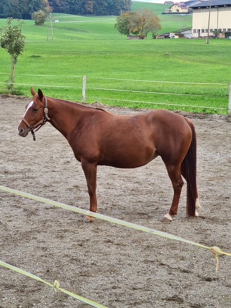 Meine wundervolle Stute Smarty sucht nun ihren ganz besonderen Herzensmenschen. Smarty ist eine echte Seele von Pferd – freundlich, ausgeglichen und mit einem Wesen, das einfach gut tut. Sie ist eine Partnerin, mit der man gerne Zeit verbringt, und kein Pferd, das „funktionieren“ muss. Für sie wünsche ich mir einen Menschen, der sein Pferd als Freund sieht, mit Geduld, Ruhe und Herz. Smarty ist 8 Jahre alt und seit ihrem 2. Lebensjahr bei mir. Sie ist leicht angeritten und zeigt sich dabei stets brav, ehrlich und bemüht. Sie bringt eine gute Basis mit und möchte behutsam weiter gefördert werden – ganz ohne Druck, dafür mit Verständnis und Freude an der gemeinsamen Entwicklung. Mit ihrer ruhigen Art ist Smarty ein Traumpartner für jeden Freizeitreiter. Ob entspannte Ausritte, gemütliche Arbeit auf dem Platz oder einfach gemeinsame Zeit – sie macht alles mit und schenkt ihrem Menschen Vertrauen und Verlässlichkeit. Smarty soll in beste Hände kommen: zu Menschen, für die das Wohl des Pferdes immer an erster Stelle steht und die Wert auf harmonische, entspannte Momente legen. Mit der richtigen Person an ihrer Seite wird sie eine wundervolle Begleiterin fürs Leben sein.