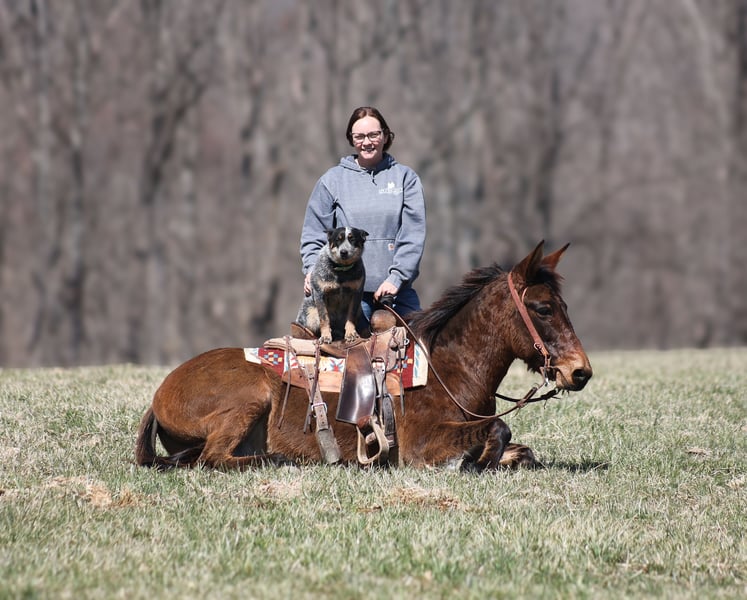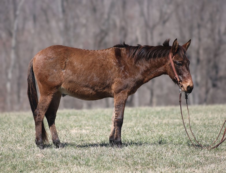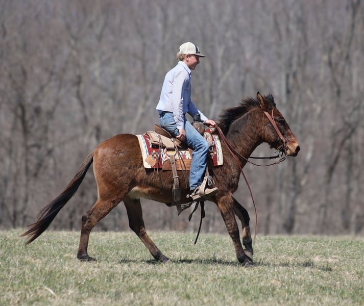 ONLINE AUCTION Place your bids at www.PlatinumEquineAuction.com Starting Bid $3500 Auction ends March 30th, 2025 Need a new saddle? Check out White Rock Saddles on our website or Facebook! Parker is a 13.2H, very stout built, 9 year old, Dun John Mule with Tiger stripes on his legs and he is one LAID BACK dude!!! Parker is quiet and gentle. He is great on trails, he rides through rough rocky terrain, dead fall, thick brush, deep water, you name it and Parker will go on through it while being surefooted. He has been used to coon hunt off of after dark, he has leg dogs and had guns shot off of his back. Parker is 100% content to just plod along slow and easy down the trails and is totally safe for timid or beginning riders. He is a great mule to help build someone’s confidence! Parker is safe on the highways and has been ridden around cows. I have started teaching him to lay down. He is easy to tack up, no issues with his ears or with his feet. Parker has been a joy to have around and he is sure to be a joy for his new family. Located in Brodhead, KY. Contact Moore Trained Horses Logan 765-265-0033 with any questions or to make a buy it now offer. ONLINE AUCTION Place your bids at www.PlatinumEquineAuction.com Starting Bid $3500 Auction ends March 30th, 2025 Need a new saddle? Check out White Rock Saddles on our website or Facebook!