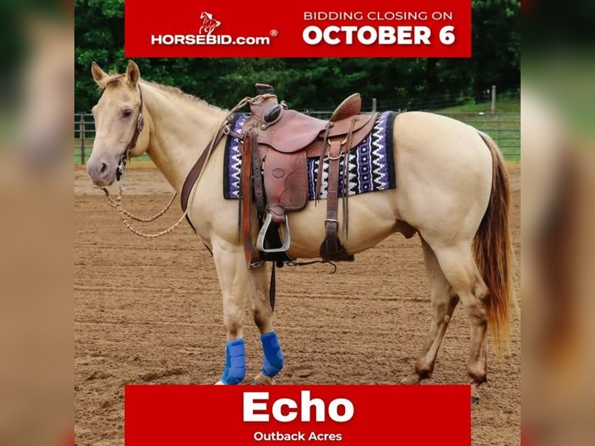 🍂 𝓐𝓾𝓽𝓾𝓶𝓷 𝑨𝑳𝑳 𝑺𝑻𝑨𝑹 𝑳𝑰𝑵𝑬𝑼𝑷 🍂 Happening now thru MONDAY | OCTOBER 6th - Available EXCLUSIVELY on HorseBid's website! For more details and to register visit: www.Horsebid.com CONSIGNOR CONTACT: Outback Acres 330-473-5855 LOCATION: Dundee, OH BREED: Quarter Horse REGISTERED: No COLOR: Champagne HEIGHT: 13.3 AGE: 9 GENDER: Gelding "🌟 Echo – 9 Yr Old Champagne QH Gelding 🌟 Beautiful • Safe • Versatile • One of a Kind If you’ve been searching for that once-in-a-lifetime horse the whole family can enjoy, meet Echo. This stunning 9-year-old champagne Quarter Horse gelding is as rare in color as he is in temperament. He’s the kind of horse you can trust with the kids and grandkids, yet he’s big and broke enough for adults to enjoy as well. Echo is the one you’ll be proud to own — the one that always gets noticed and makes you feel safe every time you swing a leg over. Echo has been my go-to horse when inexperienced riders needed something trustworthy. He has been on an equestrian drill team, carried a flag, and hauled to rodeos, so he’s comfortable in busy, loud environments. He’s been trail riding with hundreds of other horses, crossed creeks and logs, played in the water, and even spent nights out camping. He recently completed a challenging mountain trail obstacle course and handled every single obstacle with ease and confidence. He’s responsive, and fun to ride. Echo neck reins, moves off leg cues, and has smooth, easy gaits that make him a pleasure for riders of all levels. He can even be ridden bridleless and goes just as nicely in a simple halter as he does in a bridle. He stands patiently to bathe, tack, clip, and shoe, and he’s easy to catch and gets along well with other horses. Whether he’s barefoot or shod, he stays 100% sound and ready for his next adventure. Echo is as versatile as they come. He’s been used to sort and pen cattle, round up rodeo bulls, and has been around the barrels and poles and started on jumps. Nothing much fazes him, and he takes care of his rider every step of the way. He’s the rare kind of horse that can safely carry your kids on a quiet trail ride in the morning, then step up and work cattle in the afternoon. He is great to have around the barn and gets along well with any horses in the pasture. He is easy to catch and will meet you at the gate. If I go out to the pasture to bring horses in he is the first one to come up. I hop on him bareback with a halter and use him to bring the rest of the horses in. He has been used to pony other horses. He has been used at the fairgrounds through fair week to direct traffic and was not fazed by all the traffic, loud music, and rides all around him. If he is kept in a stall you might hear him crib every now and then but nothing bad. Horses like Echo don’t come along often. Between his rare champagne color, his kind and willing disposition, and his proven experience in so many settings, he truly is one of a kind. If you’ve been looking for that special partner who can do it all — from the trails, to the arena, to family fun — Echo is the one you’ve been waiting for.
