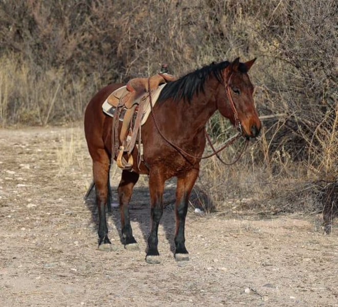 ONLINE AUCTION Place your bids at www.PlatinumEquineAuction.com Starting Bid $3500 Auction ends January 26th, 2025 Need a new saddle? Check out White Rock Saddles on our website or Facebook! Remington is a 9 year old gelding standing 15hh. Remington was born and raised on a big ranch in Arizona, making him no stranger to rough country and long days. Whether you’re looking for a surefooted, confident gelding to go do a long hard days work on, or just to go hit the trails then Remington is your guy! We’ve used Remington for all aspects of ranch work, roped and doctored yearlings, drug calves, sorted pens, and rode plenty of miles of fence. Not only is Remington great to use and ride outside, he is an absolute gentleman in the arena as well. He will walk trot and lope both ways with ease! Remington has had a job his whole life so he does move with a sense of purpose ready to do a job. Remington is easy to catch, groom, saddle, bridle, bathe, and shoe! Will come with a clean coggins and health! Transport can easily be arranged anywhere in the US!!! Located in Camp Verde, AZ. Contact D/C Equine Services Dallas 804-822-2233 Natasha 928-460-2625