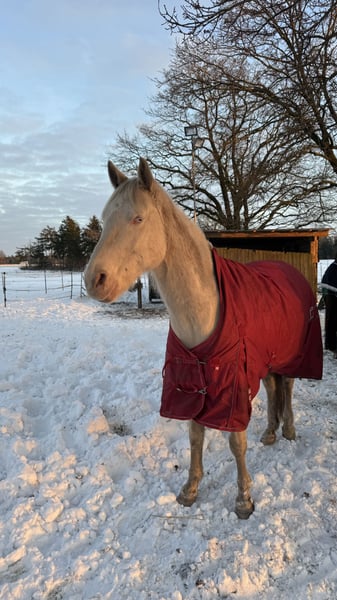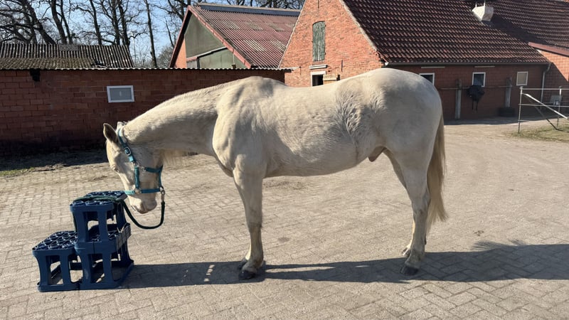 Schweren Herzens suche ich für meinen hübschen Quarter Horse Wallach „Jo Jet King Lli“, genannt Camillo, ein neues, liebevolles Zuhause. Camillo wurde am 01.05.2016 geboren, ist 1,54 m groß und besticht nicht nur durch seine außergewöhnliche Perlino-Farbe, sondern vor allem durch seinen freundlichen und ausgeglichenen Charakter. Er besitzt volle Papiere der AQHA. Ein Bild der Abstammung setze ich nachher als letztes Bild noch rein. Camillo ist western geritten und wird aktuell freizeitmäßig bewegt. Er bringt jedoch definitiv Potenzial für mehr mit, egal ob für ambitionierte Freizeitreiter oder kleinere Turniere. Neben dem Reiten kennt er auch Bodenarbeit und Spaziergänge. An Hunde ist er auch gewöhnt und hat auch mit Reitbegleithunden kein Problem. Im Gelände zeigt sich Camillo sehr brav, unerschrocken und zuverlässig – auch alleine ausreiten ist für ihn kein Problem. Eine absolute Lebensversicherung. Besonders hervorzuheben ist seine kinderliebe und vorsichtige Art, wodurch er sich auch gut als Familien- oder Freizeitpferd eignen würde. Vom Temperament her ist er eher ein ruhiger, gemütlicher Vertreter, der stets lieb im Umgang ist. Im Alltag: - Hufpfleger (er läuft bei uns barhuf) und Tierarzt sind problemlos - Verladen funktioniert mit etwas Ruhe und Geduld (nicht seine Lieblingsbeschäftigung) - Rangniedrig und gut sozial in der Herde Gesundheit: - gesund - Impfungen im Januar aufgefrischt - Zähne werden im April gemacht - regelmäßig entwurmt Auf Wunsch kann selbstverständlich auf eigene Kosten eine AKU von einem Tierarzt Ihrer Wahl gemacht werden. Haltung: Aktuell steht Camillo im Offenstall, was er sehr liebt und was ich mir auch für seine Zukunft wünschen würde. Alternativ wäre auch eine Paddockbox mit täglichem Auslauf passend. (Nicht nur eine Stunde zum reiten raus). Im Sommer verträgt er 24/7 Weidegang problemlos (bei uns selbstverständlich mit Heuzufütterung). Im Winter trägt er aktuell eine Decke. Der Verkauf erfolgt ausschließlich aus gesundheitlichen Gründen meinerseits, da ich ihm leider nicht mehr gerecht werden kann. Daher wünsche ich mir für ihn einen bestmöglichen Platz, am Besten auf Lebenszeit. Standort: Hatten Zubehör kann nach Absprache gerne mit übernommen werden. Bei ernsthaftem Interesse freue ich mich über eine Nachricht und ein persönliches Kennenlernen. Für mich gilt definitiv Platz vor Preis, trotzdem sollte es realistisch bleiben.