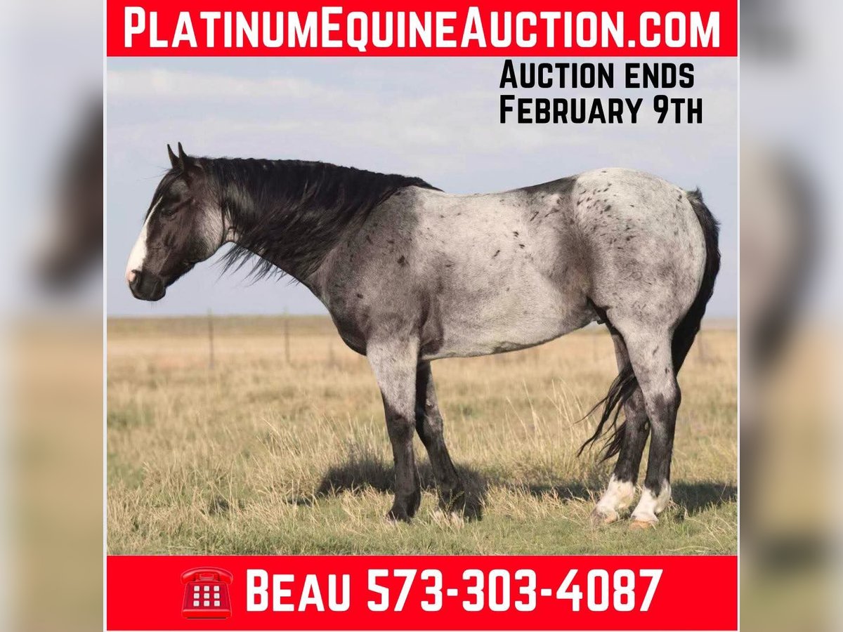 ONLINE AUCTION Place your bids at www.PlatinumEquineAuction.com Starting Bid $3500 Auction ends February 9th, 2025 Need a new saddle? Check out White Rock Saddles on our website or Facebook! Meet Blue, a charming 9-year-old blue roan Quarter Horse gelding with a heart the size of Texas . Standing proudly at 15.1 hands tall and weighing 1250lbs blue is the perfect size to fit most! From dawn till dusk, Blue has dutifully served as both a steadfast ranch horse roping sorting doctoring loading trucks and a beloved member of the family. His sturdy build and unwavering temperament make him an ideal partner for just about any task you want to throw at him! Blue possesses a kind and patient nature, earning him the trust and admiration of all who cross his path. Whether it’s navigating rough terrain or carrying young riders on leisurely rides down the trail Blue approaches every task with a steadfast determination and unwavering loyalty. Blue would make an excellent and competitive ranch riding/trail class gelding or just a sweet gentle family horse and so much more the opportunities are endless!!! Blue sells 100% SOUND He is turn Key and ready for his forever home for more in please call or text Broken S Equine Beau 573-303-4087 Located in Sweet Springs, MO. ONLINE AUCTION Place your bids at www.PlatinumEquineAuction.com Starting Bid $3500 Auction ends February 9th, 2025 Need a new saddle? Check out White Rock Saddles on our website or Facebook!