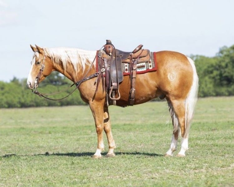 Moonshine is the color of gold! Anything you are cowboy enough to do, this gelding will be your go-to mount, yet he is gentle for the entire family. NOTE: Contact us only on our website or #; https://www.horsesranch.com/ www.horsesranch.com/ https://www.horsesranch.com/horses-for-sale drop me a line/chat; (956) 5O2 - O547 for more information.. WE DO SHIP We have amazing offers now! Purchase 3+ Horses and we will ship all for FREE. All our horses come with a 30 days Money-Back Guarantee! Dad can cowboy on him, mom can look fancy on him, and the kiddos can have fun and be safe on him. He’s easy and consistent. Monster stopper, extremely cowy, gritty and athletic. He has a rocking chair lope on a draped rein and is very comfortable to sit. Moonshine has a great cowboy walk and knows what a days work is.