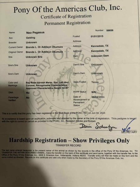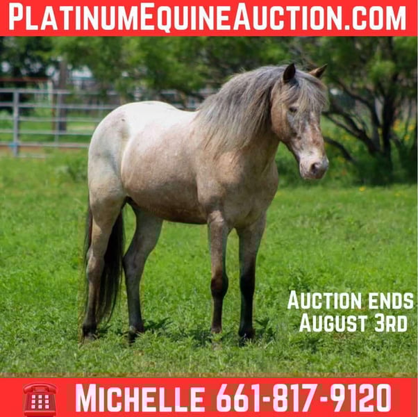 ONLINE AUCTION Place your bids at www.PlatinumEquineAuction.com Starting Bid $3500 Auction ends August 3rd, 2025 Need a new saddle? Check out White Rock Saddles on our website or Facebook Meet Neo Pegasus, affectionately known as Mufasa! This charming 2015 gelding is registered with the Ponys of Americas Club and stands at a delightful 13.3 hands tall. With his stunning thick mane, forelock, and tail, he’s not just a pretty face—he’s bursting with personality and sweetness! Mufasa absolutely adores the kids and is always on the lookout for a sneaky treat (cookies) from the kids . If you’re searching for a versatile all-around pony that’s done a bit of everything, he’s your guy! Mufasa rides beautifully in both English and Western disciplines and has a real passion for jumping. He’s been used for ranch sorting (non-competitive), has experience with barrels and poles, and has navigated trail courses with ease. He’s even had ropes thrown off him and has been involved in pen roping some slower breakaway calves—he truly can do it all! We have used him weekly at the sale barn penning back cattle and loading trucks. His sturdy build and friendly demeanor make him a joy to work with.He has had many different ages and levels of riders use him for lessons , if your a beginner rider he would thrive with trainer supervision because of all of his buttons. He mostly suits an intermediate rider. He’s always eager to tackle any challenge you throw his way, whether it’s hitting the trails or exploring new obstacles like water, bridges, and logs. Plus, he’s used to traffic, ATVs, and tractors, so you can feel confident taking him out and about. Whether you want to stall him or let him roam with a herd. With his prime age, perfect size, and versatility, he’s the ideal companion for everyone to enjoy! Come meet Mufasa and see just how wonderful he is! We are open to anyone interested in him to schedule a time to come see him or if you can’t make it schedule a FaceTime showing to see him. If you need help with transport don’t hesitate to ask we have a list of reputable haulers that can get him safely to your doorstep WORLD WIDE including, Alaska , Mexico, Hawaii, Canada and anywhere in between. For more info contact M$ Performance Horses Michelle 661-817-9120. ONLINE AUCTION Place your bids at www.PlatinumEquineAuction.com Starting Bid $3500 Auction ends August 3rd, 2025 Need a new saddle? Check out White Rock Saddles on our website or Facebook