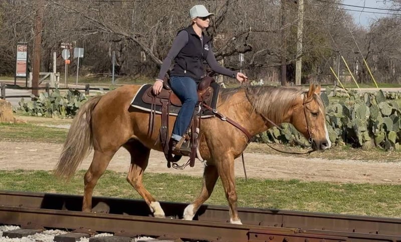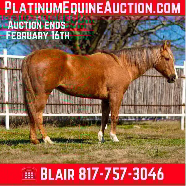 ONLINE AUCTION Place your bids at www.PlatinumEquineAuction.com Starting Bid $3500 Auction ends February 16th, 2025 Need a new saddle? Check out White Rock Saddles on our website or Facebook Barbie is everyone’s DREAM horse. She is a STUNNING palomino with a gorgeous silver mane and tail! Standing at 14.2H and just 11 yrs old, this mare is the perfect height and age!! She is one of the sweetest, purest, most kind mares you’ll ever come across. She has one of the silliest, heart warming personalities and will absolutely win anyone over! Barbie is undoubtedly SAFE and will take care of babies to grandmas. She is GENTLE GENTLE GENTLE and has ZERO buck, bolt, rear or spook! She handles everything with ease and ALWAYS aims to please! If our son was at an age where he could sit on a horse and hold the reins on his own, she would NOT be leaving. We will GLADY buy her back in a couple years when he’s ready for her if you’re looking for a short term confidence booster! Barbie is as easy as they come to ride, anyone that can hold the reins will be able to operate her with ease! She neck reins, moves off leg, stops perfect and is COMFORTABLE! She goes exactly how fast you tell her to, when you tell her with very smooth gaits. Barbie would be the perfect fit for any beginner, novice kid, novice adult, or lesson program. She is also handy and incredibly enjoyable, any experienced adult will appreciate her as a safe, sane mount to do anything with! She is broke enough to go any direction you want to take her! Barbie loads, leads, bathes, and hauls great! She gets along with everyone and is not your typical mare! You’ll want to snatch this once in a lifetime Barbie dream horse up while you can. With years in this industry, it’s very few and far between that we’ve seen such a level headed, SAFE horse that’s is in a color everyone desires! Barbie is UTD on teeth, feet and coggins and ready for her new family! More pics and videos on her website page at northtexashorsecompany.com/barbie. Please call Blair with North Texas Horse Company for more info at 817-757-3046, we LOVE to talk about her! We are located in Weatherford, TX and can help arrange affordable shipping to anyone!! ONLINE AUCTION Place your bids at www.PlatinumEquineAuction.com Starting Bid $3500 Auction ends February 16th, 2025 Need a new saddle? Check out White Rock Saddles on our website or Facebook
