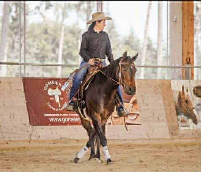 Due to personal reasons, I am reluctantly selling my Quarter Horse gelding, "Boggies Flashchex," affectionately known as Rudi. Rudi will turn 12 years old in April and is an all-rounder par excellence! He is equally comfortable riding alone or in a group (see photo) in the terrain. He is completely road and traffic safe and is not easily spooked by anything. He also performs confidently at competitions. My wife has ridden him in various ranch disciplines. He masters all maneuvers that a well-trained Western horse should be capable of. Rudi stands approximately 1.50 meters (15 hands) tall and has never been ill or lame during our time together. Currently, he is in an active stable with a mixed herd. I would prefer a paddock stall for Rudi, as he greatly enjoys the company of his equine friends. Rudi is only available to responsible, non-dealer buyers. His tack (saddle, bridle, etc.) can be purchased separately upon request. Location: 94431 Pilsting