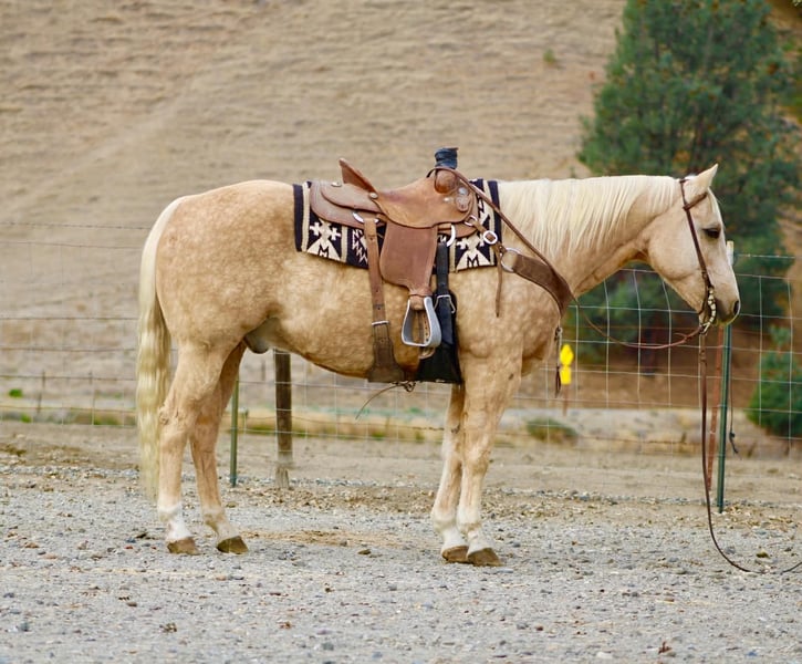 ONLINE AUCTION Place your bids at www.PlatinumEquineAuction.com Starting Bid $3500 Auction ends November 30th, 2025 Need a new saddle? Check out White Rock Saddles on our website or Facebook The Golden Kind Everyone Looks For but Rarely Finds. If you’ve been waiting for a horse that combines eye-catching beauty with real-world experience take a close look at Cash. This stunning 12-year-old, 15-hand, 1,200-pound dapple palomino gelding is the complete package: gentle, seasoned, broke, and dependable in every situation. Cash is as safe and user-friendly as they come. He’s been used extensively on the ranch for gathering, sorting, doctoring, and branding, and he handles every job with maturity and confidence. Out on the trail, he is rock solid — surefooted through steep country, steady in the trees, calm in deep water, and comfortable in rough terrain. He crosses bridges, walkovers, tires, and any obstacle you present with zero hesitation. Tarps, flags, traffic, dogs, bicycles, and busy environments don’t faze him in the slightest. In the arena, Cash shows off the kind of training that takes years to build. He lopes around smooth and collected, stays soft in the bridle, has a clean stop, easy turnaround, and a correct, uncomplicated way of going that riders of any level can appreciate. He’s the same horse every day — whether he’s been ridden all week or pulled straight from turnout. Ropers, pay attention. Cash is a finished heel horse with all the credentials. He scores quiet, leaves flat, hunts the corner, and drags his hip with confidence every run. He’s extremely easy to rope on, stays cool and correct, and has been hauled to jackpots and used in real-world ranch roping. You can head on him as well — he’s versatile, experienced, and steady in the box. Cash has the kind of foundation and seasoning that makes him suitable for riders of all levels. He’s gentle enough to teach someone new, and broke and dependable enough for a serious hand who wants a horse they can trust to get every job done right. He ties, clips, bathes, loads, hauls, stalls, or pastures with no issues and has been an absolute gentleman in every setting. Cash represents the kind of quality most people hope to find but rarely get the chance to buy. He brings looks, training, and real-world dependability together in one golden package. If you want a horse you can be proud to own from the moment you unload him, Cash is the one that stands out. Dina – Longhorn Ranch • Paicines, California (831) 537-1915 Nationwide shipping available. ONLINE AUCTION Place your bids at www.PlatinumEquineAuction.com Starting Bid $3500 Auction ends November 30th, 2025 Need a new saddle? Check out White Rock Saddles on our website or Facebook