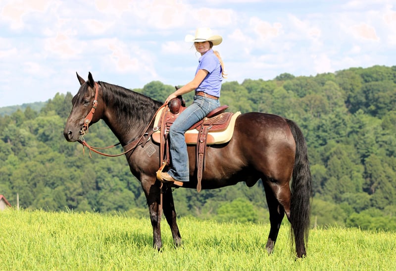 ⚜ The HERITAGE Classic ⚜ Happening now thru MONDAY | AUGUST 11th - Available EXCLUSIVELY on HorseBid's website! For more details and to register visit: www.Horsebid.com CONSIGNOR CONTACT: KS Select Horses 814-229-3290 LOCATION: Clarion, PA BREED: QH REGISTERED: No REGISTERED NAME: Pistol COLOR: Black HEIGHT: 15 AGE: 12 GENDER: Gelding Pistol is a 12 Year Old Black Quarter Horse Gelding. He is 15 hands tall and very stocky built. He is built like the old foundation Quarter Horses. Wow Check Him Out!! He is the whole package! Good Looking, Perfect Age, Quiet , Gentle , Super Broke To Ride and Safe!! Pistol is a very good trail horse. He will go anywhere you ask him to go on the trail. Goes thru mud, water and over logs with ease. Trail ride him out alone or with other horses. If you been looking for that reliable seasoned trail mount then Pistol is exactly that. He also rides nicely in the arena and has a nice walk, trot and canter. Lopes good circles and hits his leads each way. Would be a good horse to give kids riding lessons on or beginners or timid riders. We have also have used him to push cattle around the farm and he really enjoys any kind of ranch work you give him to do also. Pistol stands for the mounting block making him easy to get on. He is very friendly and loves attention. He is good for the farrier and the vet and easy to bath. If you been looking for that super nice all around gelding then be sure to check Pistol out. We can help arrange delivery anywhere in the United States. Call or Text Kris at 814-229-3290. Thank You and God Bless