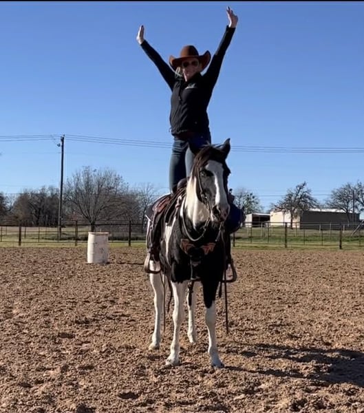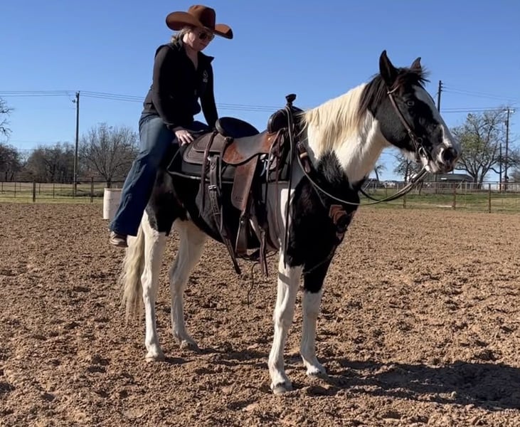 ONLINE AUCTION Place your bids at www.PlatinumEquineAuction.com Starting Bid $3500 Auction ends February 1st, 2026 Need a new saddle? Check out White Rock Saddles on our website or Facebook Zoey is a gorgeous 14.1H, 13 yr old black and white paint mare with one blue eye and a HUGE loving personality! She is a very gentle mare that is suitable for anyone! She’s incredibly safe and is the “more whoa than go” type. She’s been a trail horse the majority of her life and has been rode by various levels of riders. She is not a marish mare at all and she’s the bottom of the totem pole when turned out. Zoey is not spooky and handles all new adventures with ease! She has zero buck, bolt or bite and is the perfect easy going trail horse for anyone looking for something SAFE and gentle! She will neck rein, move off leg and switch gaits only when asked! Zoey is the kind you can leave off for weeks and jump on when it’s cold outside and not have to worry about any silly tricks. She’s absolutely gentle enough for the babies to be around/handle. She loves attention and has a huge loving personality! Zoey is great about all things and loads, leads, bathes, ties, and hauls with ease. She would make a great beginner horse, trail horse for anyone, or even lesson horse! She would be the perfect present for anyone looking for a starter horse for their kids this holiday season! Please call Blair with North Texas Horse Company for more info at 817-757-3046. We are located in Weatherford, TX and can help arrange affordable shipping to anyone!! ONLINE AUCTION Place your bids at www.PlatinumEquineAuction.com Starting Bid $3500 Auction ends February 1st, 2026 Need a new saddle? Check out White Rock Saddles on our website or Facebook
