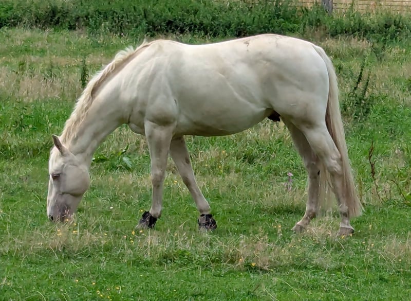 Wunderschöner und braver Quarter Horse Wallach in Sonderfarbe creme-champagner-dun aus gesundheitlichen Gründen des Besitzers in liebevolle Hände abzugeben. Er ist sehr brav und willig, ist dem Menschen sehr zugewandt und möchte immer gefallen. Er wurde auf einigen EWU Turnieren erfolgreich in der LK 4 in den Disziplinen Ranch Riding, Ranch-Rail, Horsemanship, Pleasure und Showmanship vorgestellt. Leider hat er eine Atemwegserkrankung, wegen der er am besten in einem staubarmen Offenstall gehalten werden sollte. Auch wollen wir erwähnen, dass er 3 Sarkoide hat, die ihn aber absolut nicht beeinträchtigen. Aufgrund der Erkrankung der Besitzerin ist er derzeit nicht im Training und sollte wieder aufgebaut werden. Da er sehr viel Spaß am Training hat und recht schnell Muskulatur aufbaut, ist das bei ihm kein Problem. Er wurde regelmäßig geimpft und entwurmt und ist schmiede- und verladefromm. Wir wünschen uns für ihn einen Bestplatz bei liebevollen Menschen, die sich auf sein Handicap einstellen und ihn entsprechend seiner körperlichen Konstitution fordern und fördern. Gern sind wir für alle anfallenden Fragen offen.